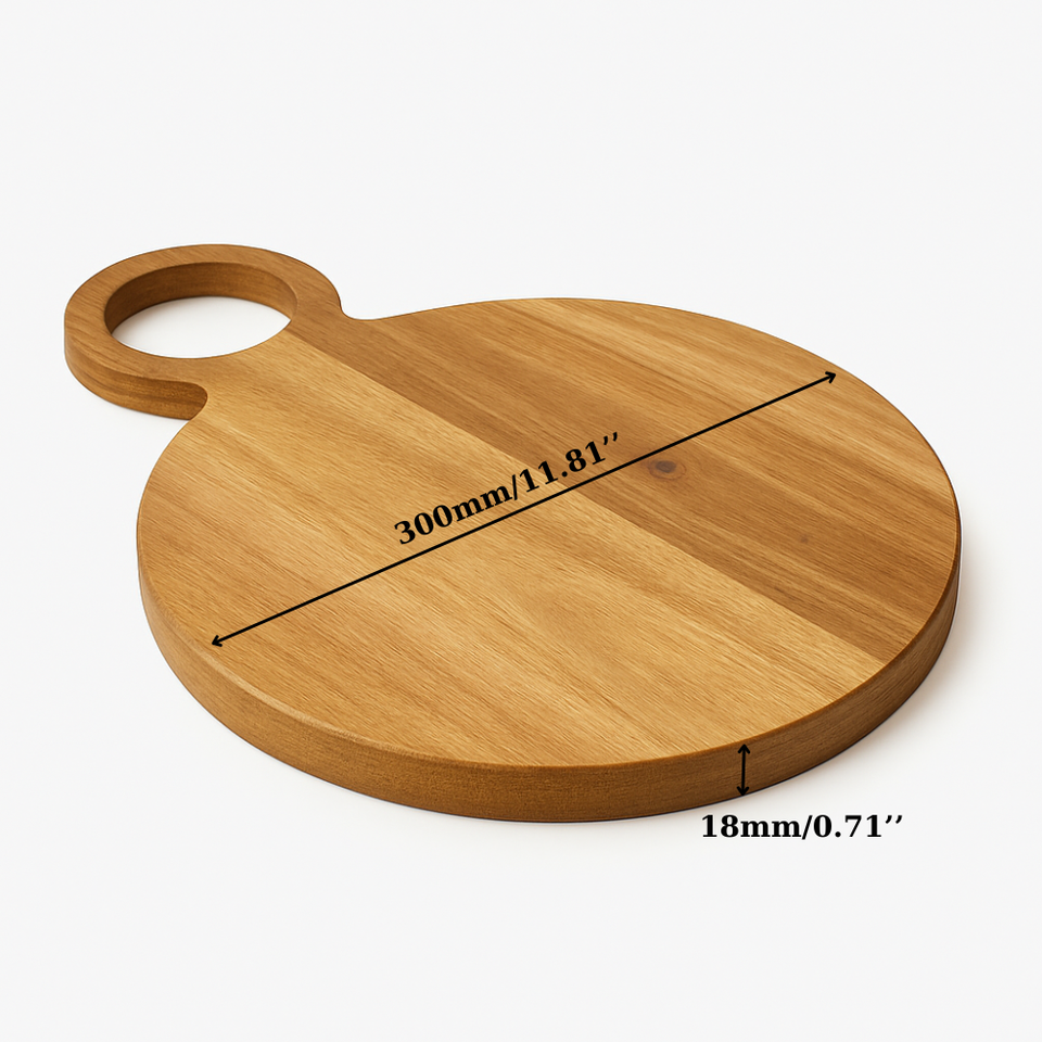 เขียงไม้ทรงกลมทำจากไม้กระถินพร้อมรูจับ สำหรับหั่นเนื้อ ขนมปัง ชีส และเสิร์ฟอาหาร