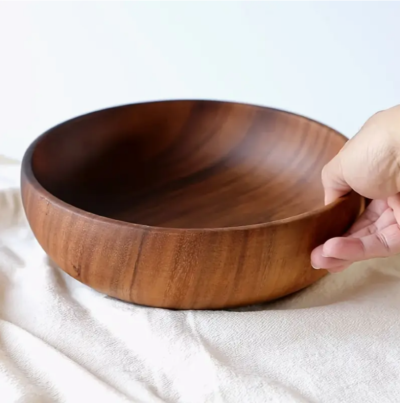 ชามไม้อะคาเซียทรงกลมชามเสิร์ฟก๋วยเตี๋ยวข้าวอุปกรณ์ครัวร้านอาหารเครื่องใช้บนโต๊ะอาหาร