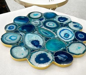 รอบหินอาเกตการออกแบบที่ทันสมัยห้องนั่งเล่นหรูหราด้านข้างของหินอัญมณีโต๊ะกาแฟหินควันท็อปเฟอร์นิเจอร์อาเกต