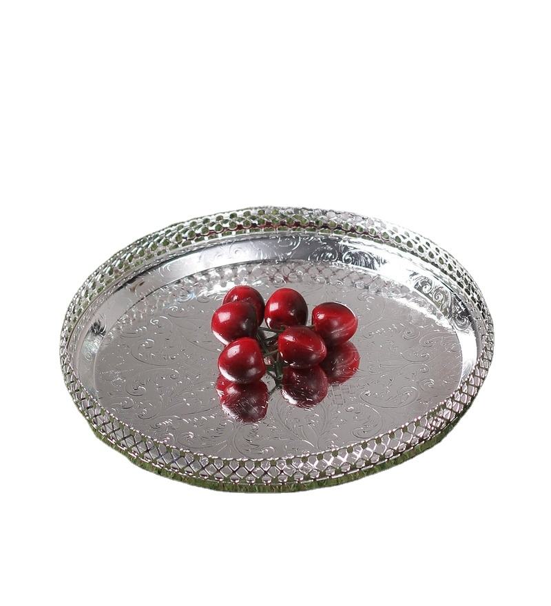 ถาดเสิร์ฟอะลูมิเนียมทรงกลมเคลือบเงินและขัดเงาด้วยมือ ถาดเสิร์ฟอะลูมิเนียมทรงกลมสำหรับขาย