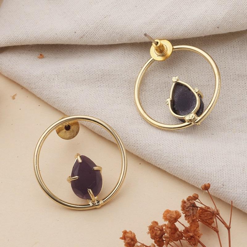 ต่างหินอเมทิสต์ทรงกลม ดีไซน์คลาสสิกหรูหรา สีสันสดใส เครื่องประดับมีสไตล์สำหรับผู้หญิง เหมาะสำหรับสวมใส่ทุกวันและในเวลากลางคืน