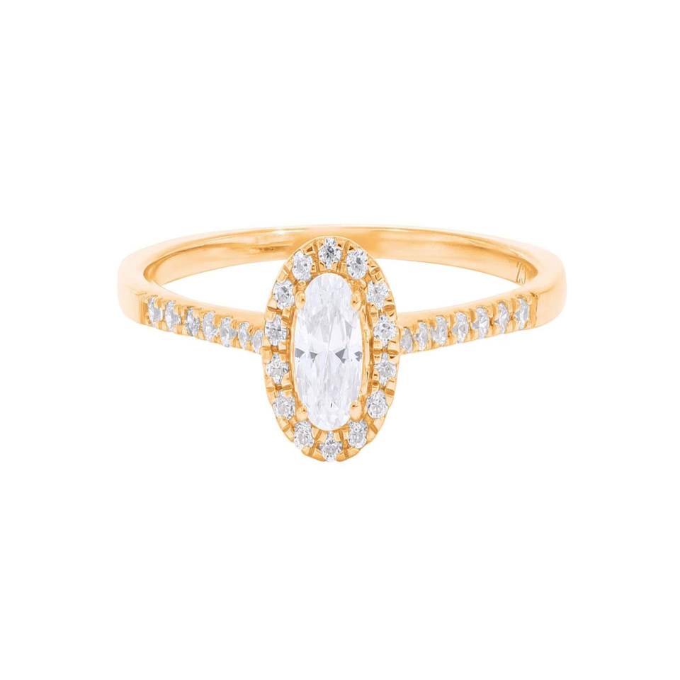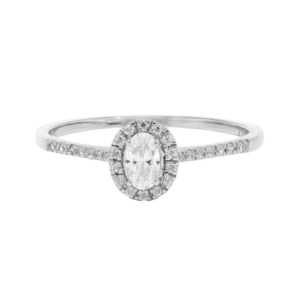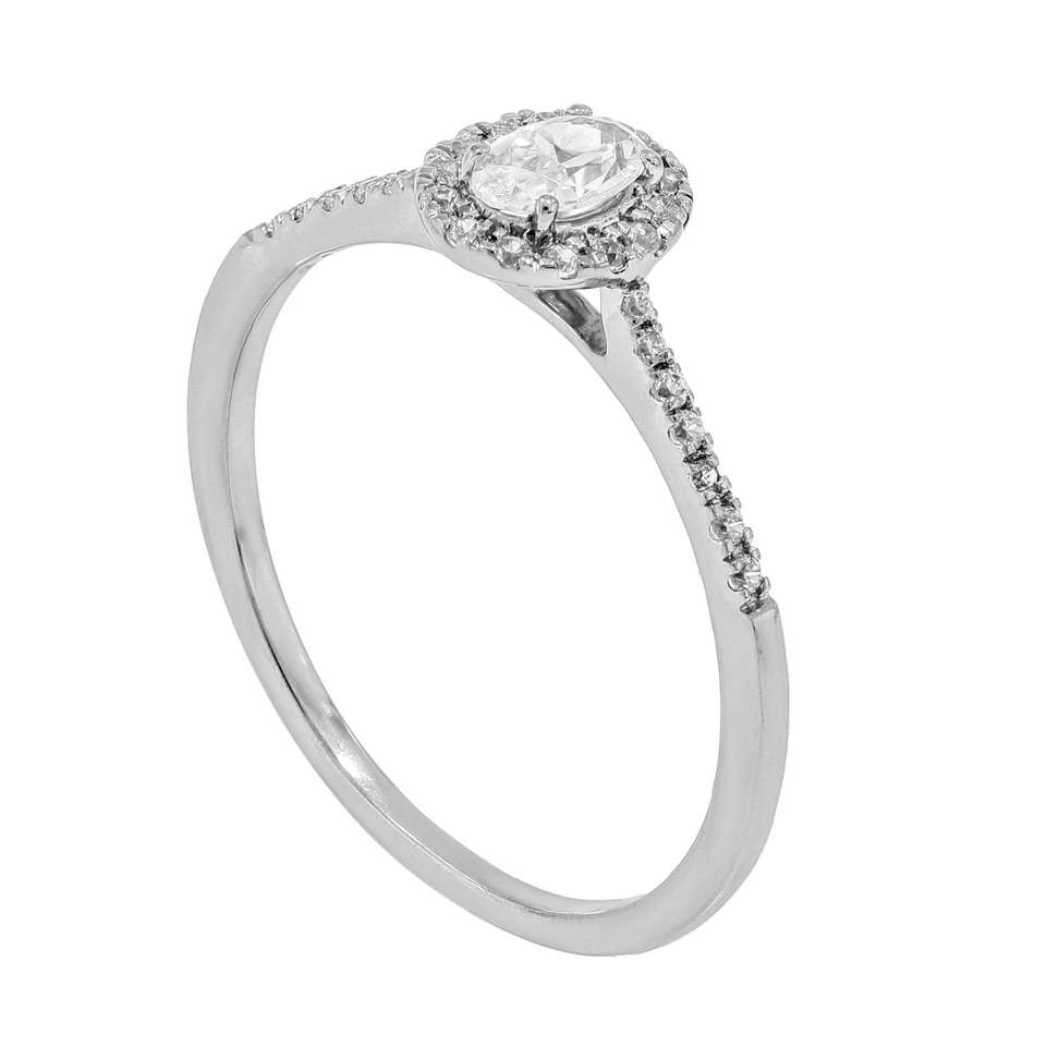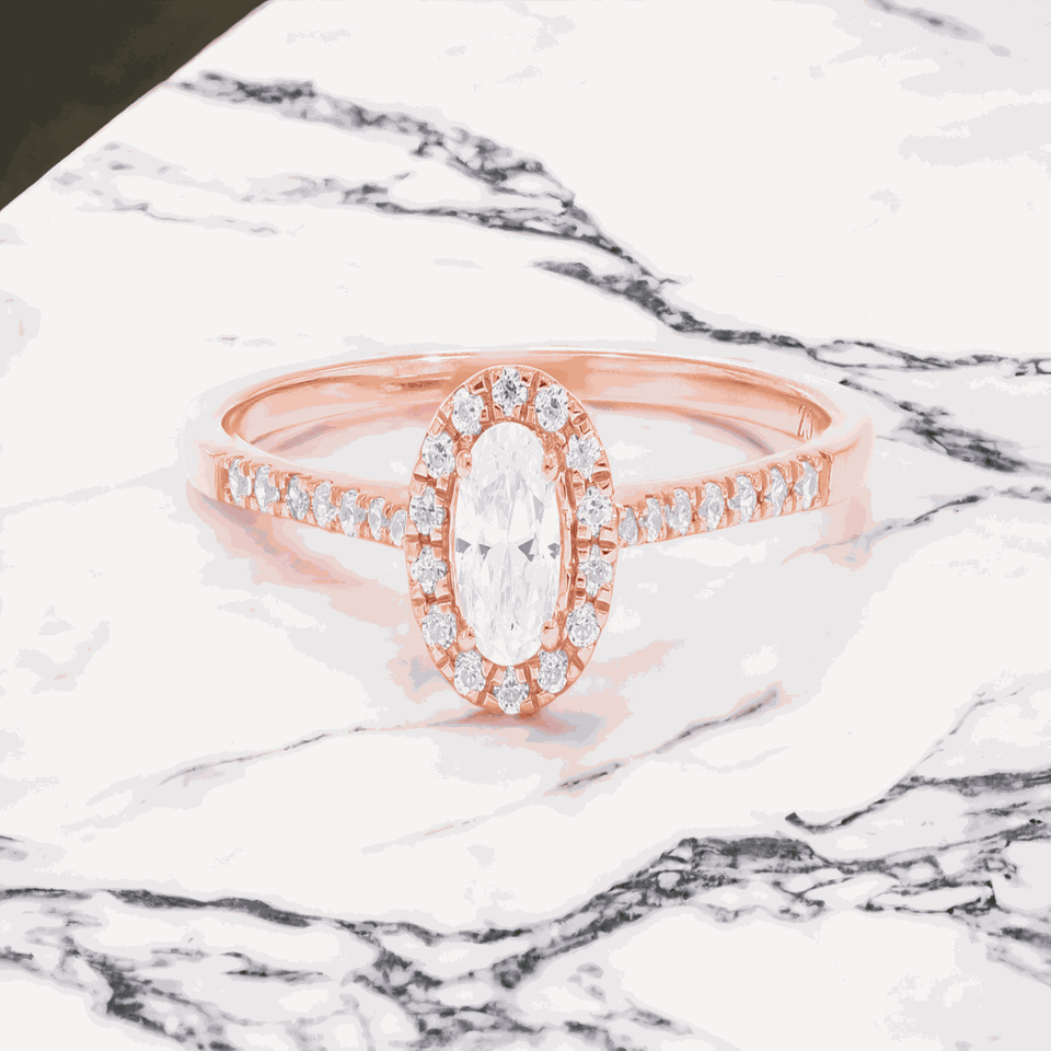 แหวนหมั้นดีไซน์วงแหวนเพชรทรงกลมและวงรีสำหรับผู้หญิง