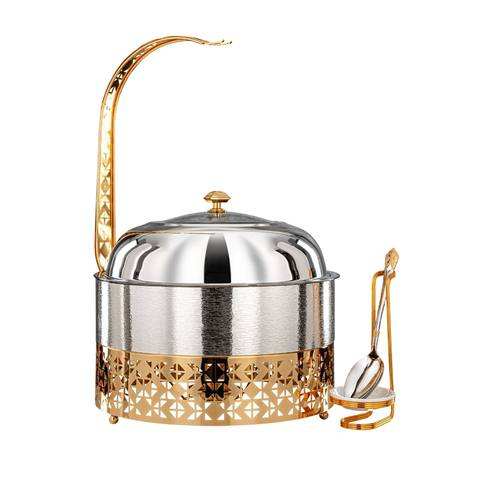 หม้อปรุงอาหารโลหะพร้อมขาตั้งจานเขียนอักษรอาหรับสำหรับบ้านโรงแรมบุฟเฟ่ต์ปาร์ตี้ที่อุ่นอาหารตะวันออกกลาง