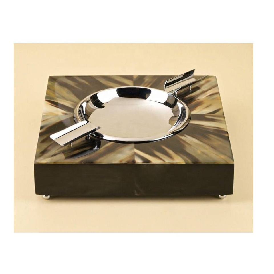 ที่เขี่ยบุหรี่ทรงกลมทำจากเขาสัตว์และโลหะที่เขี่ยบุหรี่หรือที่เขี่ยซิการ์ใช้สำหรับวางบนโต๊ะสำนักงานบาร์คาเฟ่และที่บ้าน
