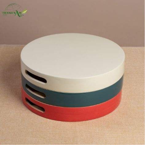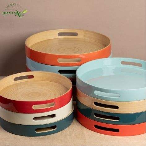 ถาดไม้ไผ่ทรงกลม - เป็นมิตรกับสิ่งแวดล้อม ทนทาน กันน้ำ น้ำหนักเบา ดีไซน์ปรับแต่งได้ เคลือบเงา สำหรับใช้ในบ้านและร้านอาหาร