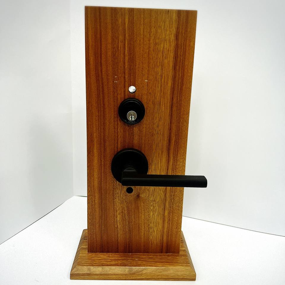 ชุดล็อคประตูทรงกลมสีดำแบบกลไก พร้อมระบบปิดเสียง สำหรับประตูห้องนอนหลักในวิลล่า