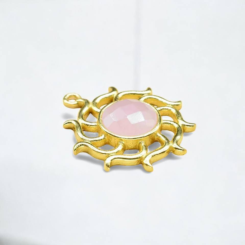 เครื่องประดับควอตซ์พลอยสีดำทรงกลมชุบทองจี้แฟชั่น-เครื่องประดับเงิน925มีเสน่ห์-ขายส่งเครื่องประดับชิ้น