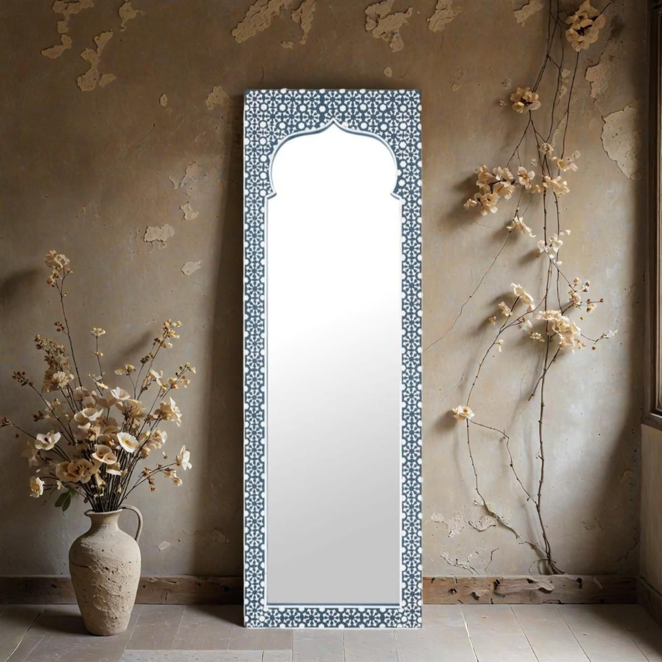 กรอบกระจกฝังกระดูกทรงกลม งานแฮนด์เมดจากอินเดีย กระจกตกแต่งผนังสำหรับพื้นที่หรูหรา