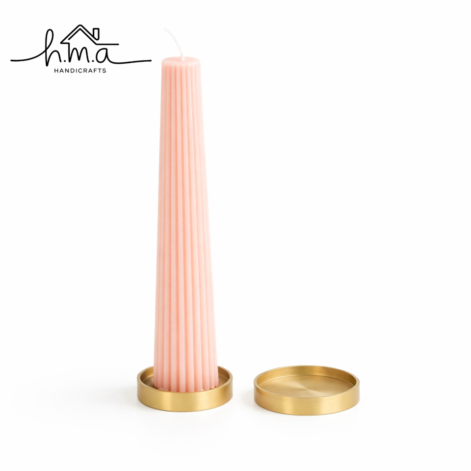 จานรองเทียนทองเหลืองทรงกลมแบบมินิมอล ที่วางเทียนสีทองสำหรับเทียนทรงกระบอกและเทียนทรงเรียว ตกแต่งโต๊ะอย่างหรูหรา