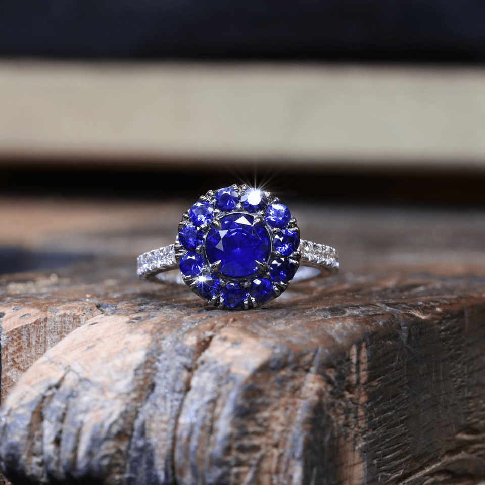 แหวนไพลินสีน้ำเงินและเพชร