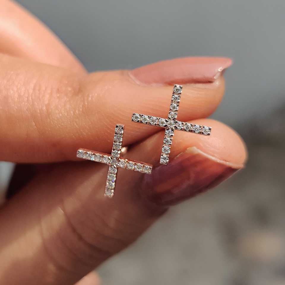 ต่างหูมอยซาไนต์ทรงกลมเจียระไนแบบบริลเลียนท์รูปกากบาท เงินแท้ 925 หรูหรา ทันสมัย เหมาะสำหรับงานหมั้น งานแต่งงาน และวันครบรอบ
