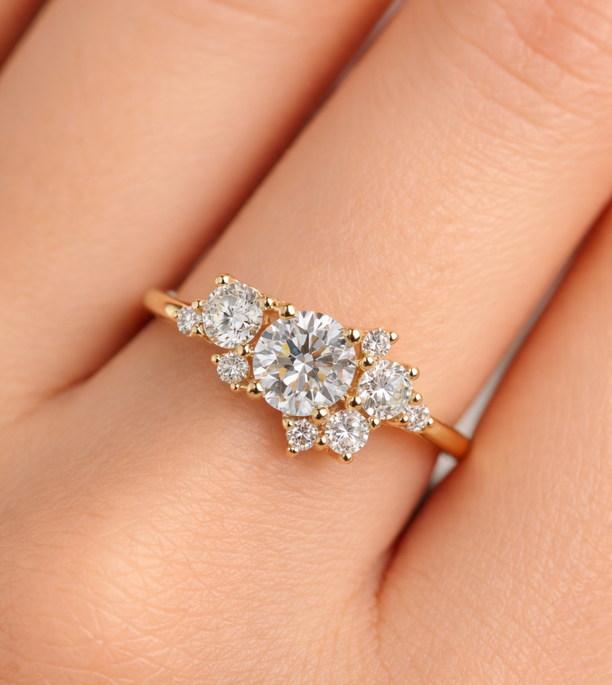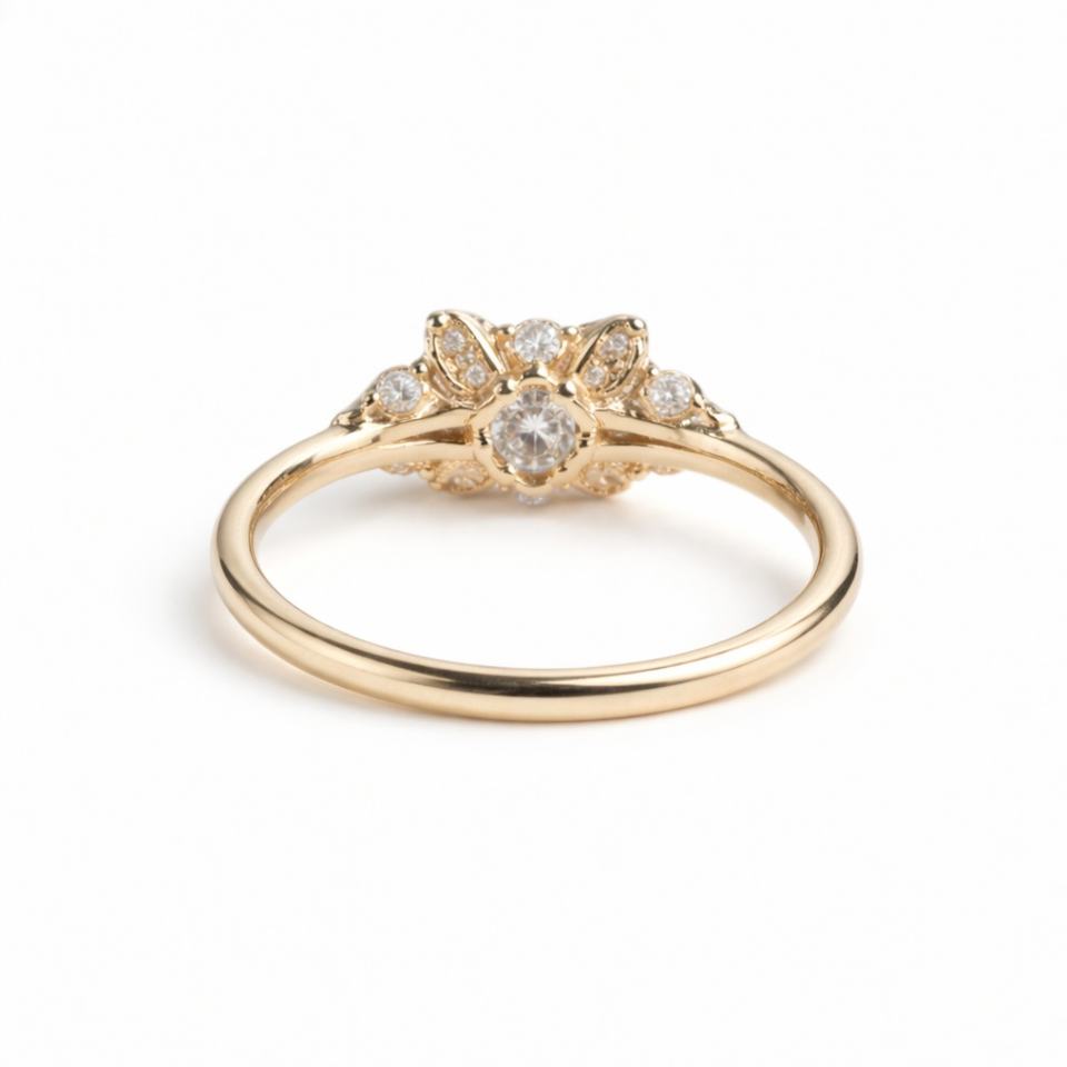 แหวนเพชรทรงกลมเจียระไนแบบบริลเลียนท์ แหวนหมั้นเพชรเม็ดกลมที่ได้รับการรับรองจาก IGI ตัวเรือนทองคำแท้ 18K สีเหลือง ประดับเพชรแบบหนามเตย
