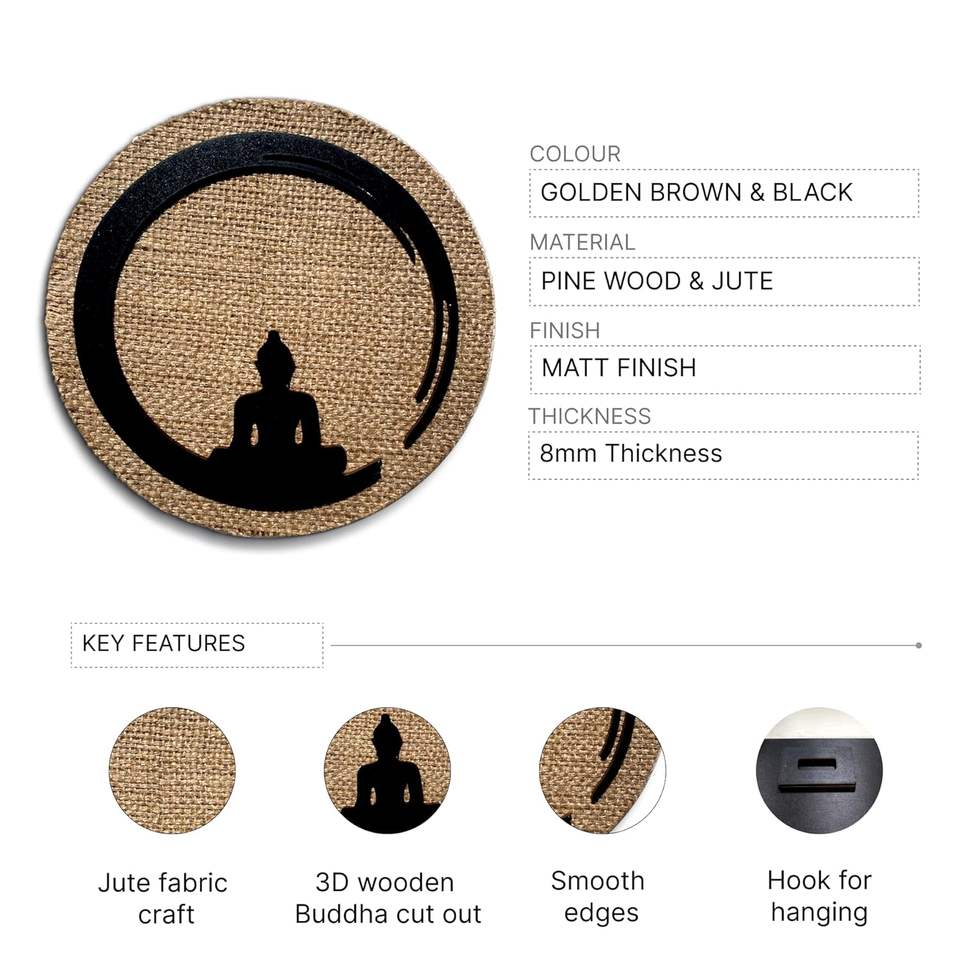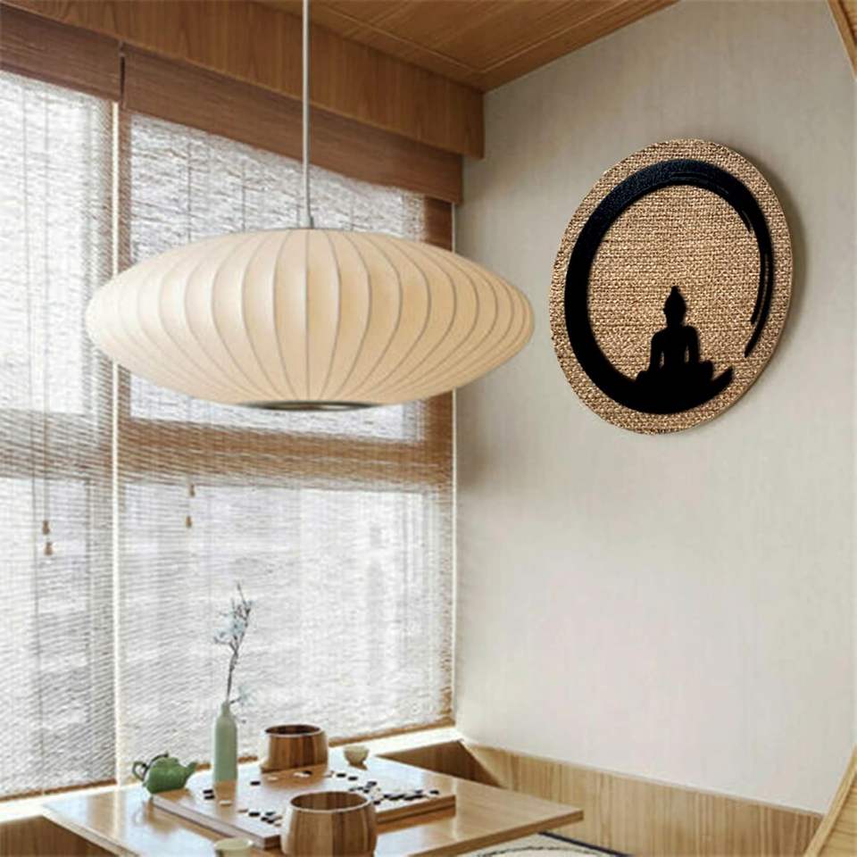 งานศิลปะติดผนังรูปพระพุทธรูปทรงกลมพร้อมพื้นหลังผ้าปอกระเจา ของตกแต่งผนังสำหรับห้องนั่งเล่น ห้องนอน ห้องบูชา สำนักงาน คาเฟ่ ของตกแต่งบ้าน