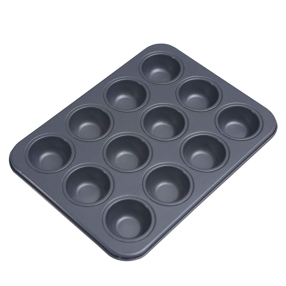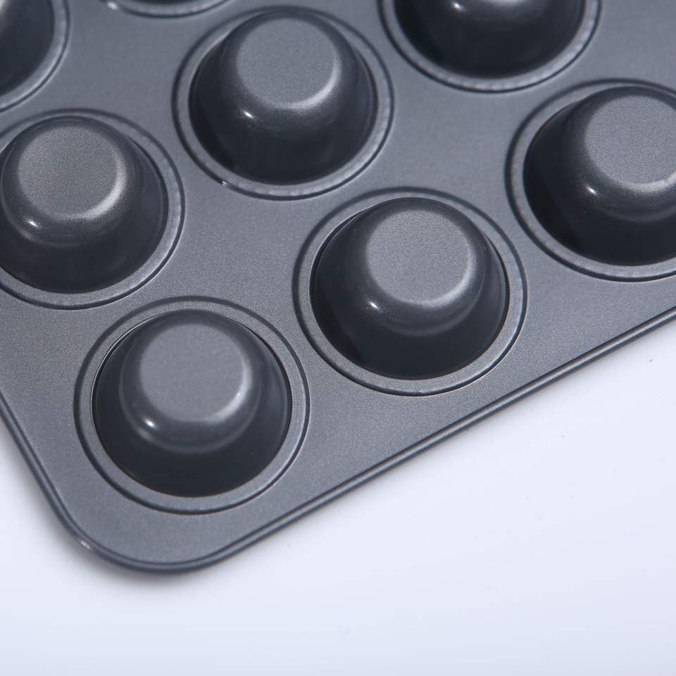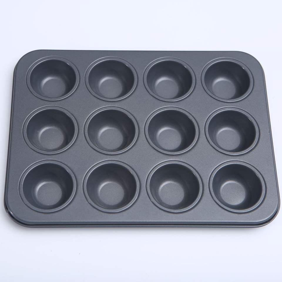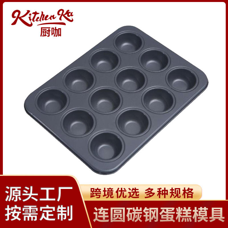 แม่พิมพ์เค้กทรงกลม 6-12 ถ้วย ทำจากเหล็กคาร์บอนเคลือบสารกันติด สำหรับทำขนมเค้ก