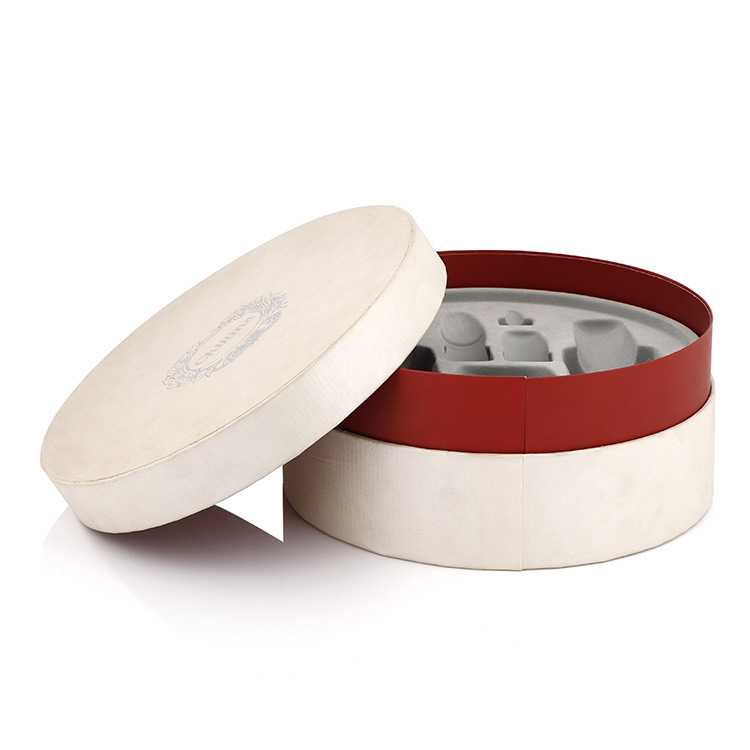 ขวดน้ำหอมกระดาษแข็งทรงกลมดีไซน์พิเศษกระดาษสีทองกระดาษบรรจุภัณฑ์ทรงกระบอกพร้อมแผ่นรอง EVA