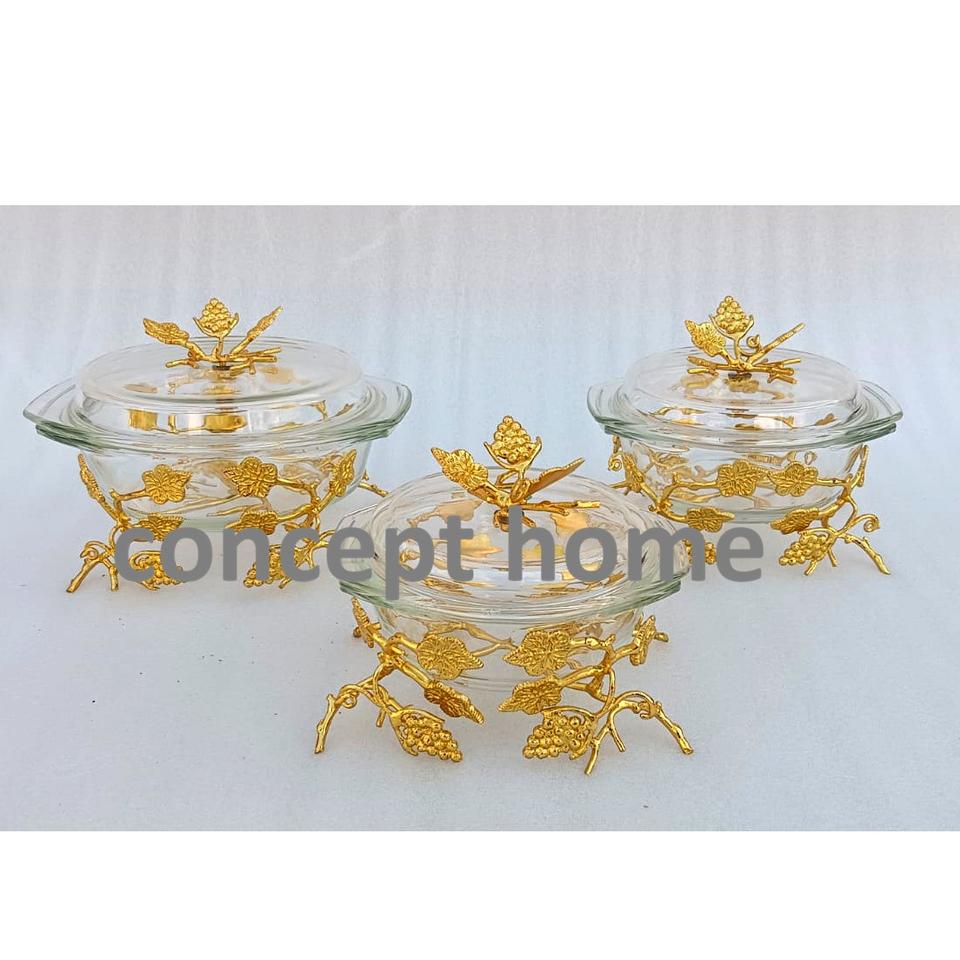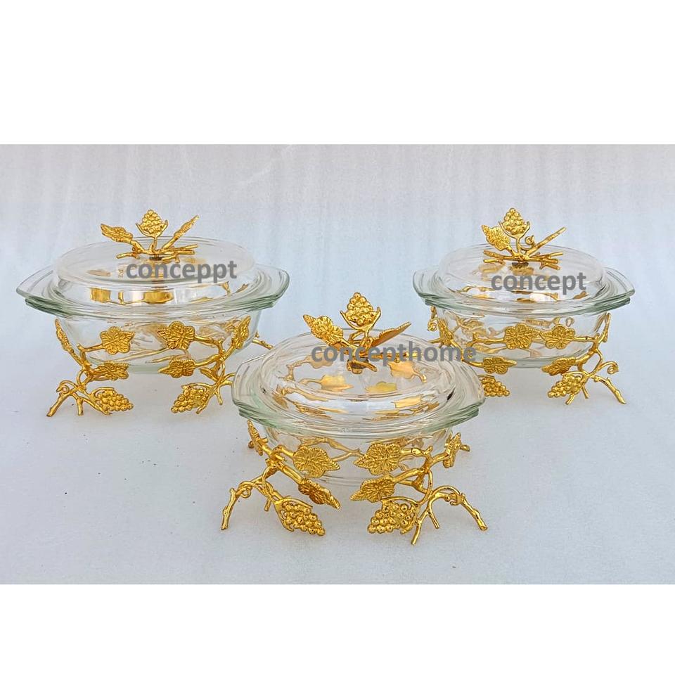 หม้อตุ๋นทรงกลมพร้อมขาตั้งโลหะลายดอกไม้สีทองสำหรับอุ่นอาหารบุฟเฟ่ต์ เหมาะสำหรับทุกงาน ใช้เป็นภาชนะเสิร์ฟและตกแต่งโต๊ะ