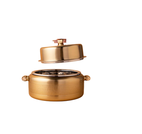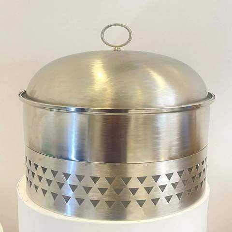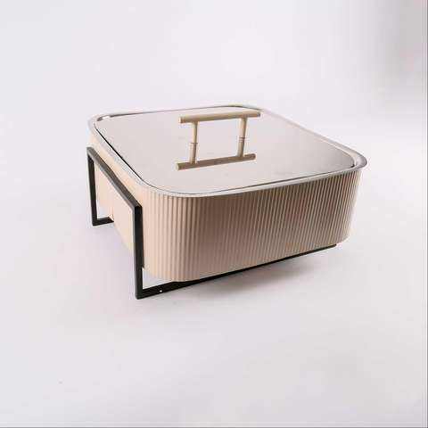 จานเหล็กสแตนเลสทรงกลมที่อุ่นอาหารสุดหรูถาดอุ่นอาหารจานบุฟเฟ่ต์และหม้อร้อนเสิร์ฟ