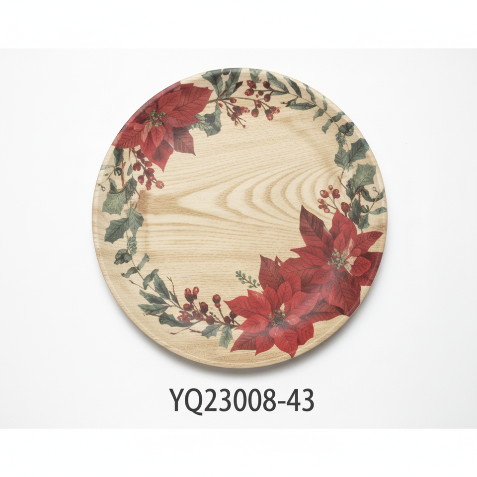 จานคริสต์มาสกลมสำหรับมื้ออาหารเทศกาล
