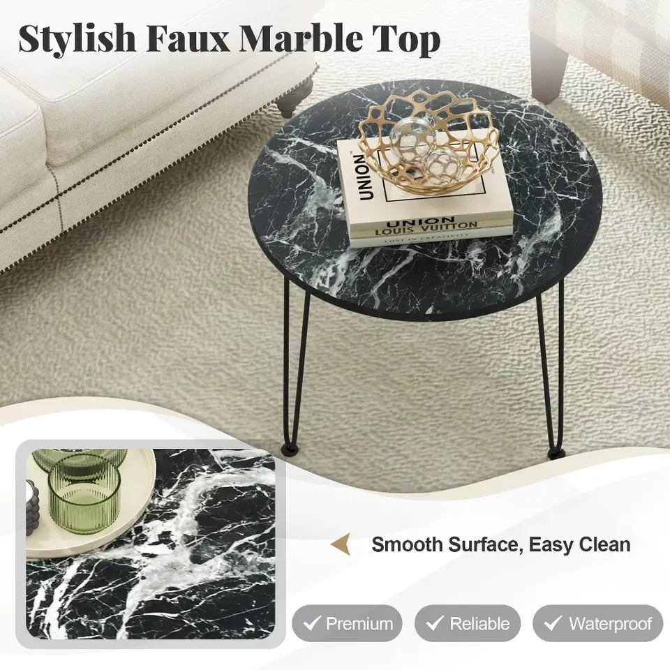 โต๊ะกาแฟทรงกลม โต๊ะกลางลายหินอ่อนเทียม ขาโลหะ โต๊ะกาแฟข้างโซฟา สำหรับห้องนั่งเล่น ห้องนอน ระเบียง