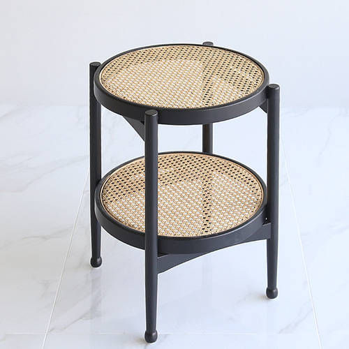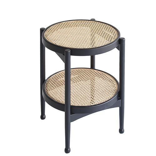 Round Coffee Table High Quality Made of Solid Teak Wood Frame with Woven Rattan and Finish Color Black for Indoor and Outdoor
