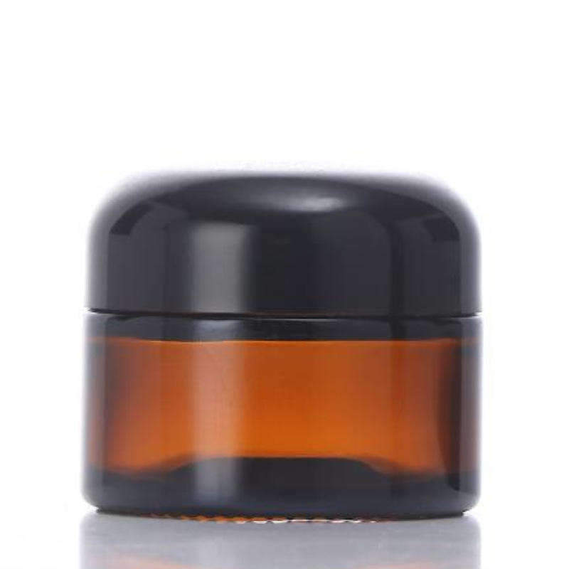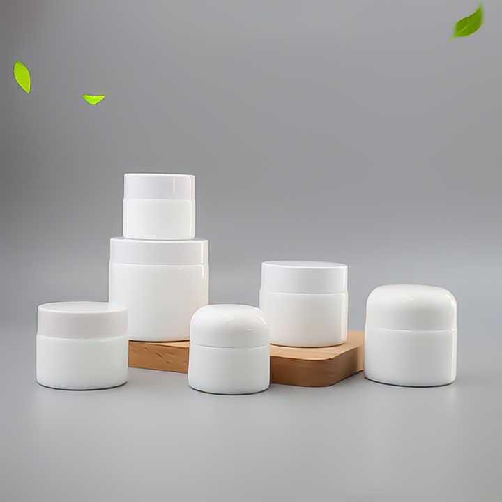 ขวดแก้วเครื่องสำอางทรงกลมที่มีฝาปิดสีดำสีขาวสีฟ้าสีเขียวพิมพ์ลายสำหรับโถครีมเปล่าสำหรับกลางวันและกลางคืน