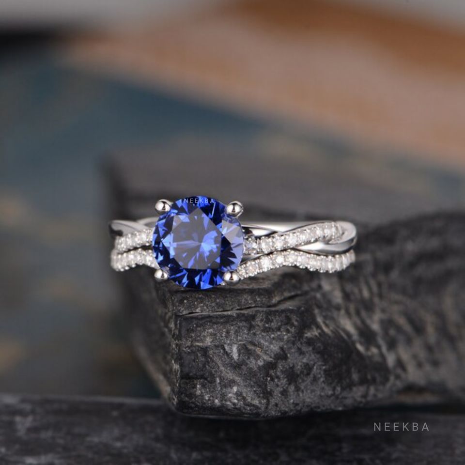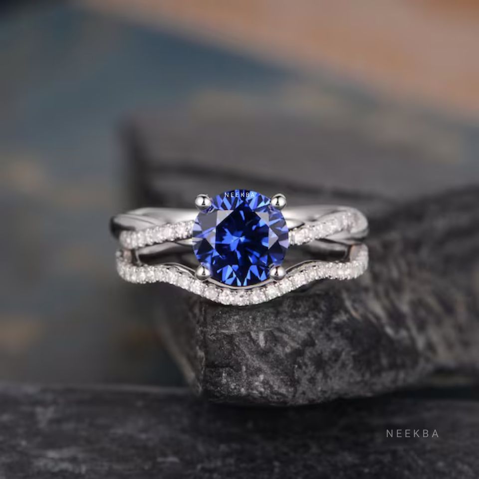 ชุดแหวนแต่งงานไพลินสีน้ำเงินประเภทแหวน