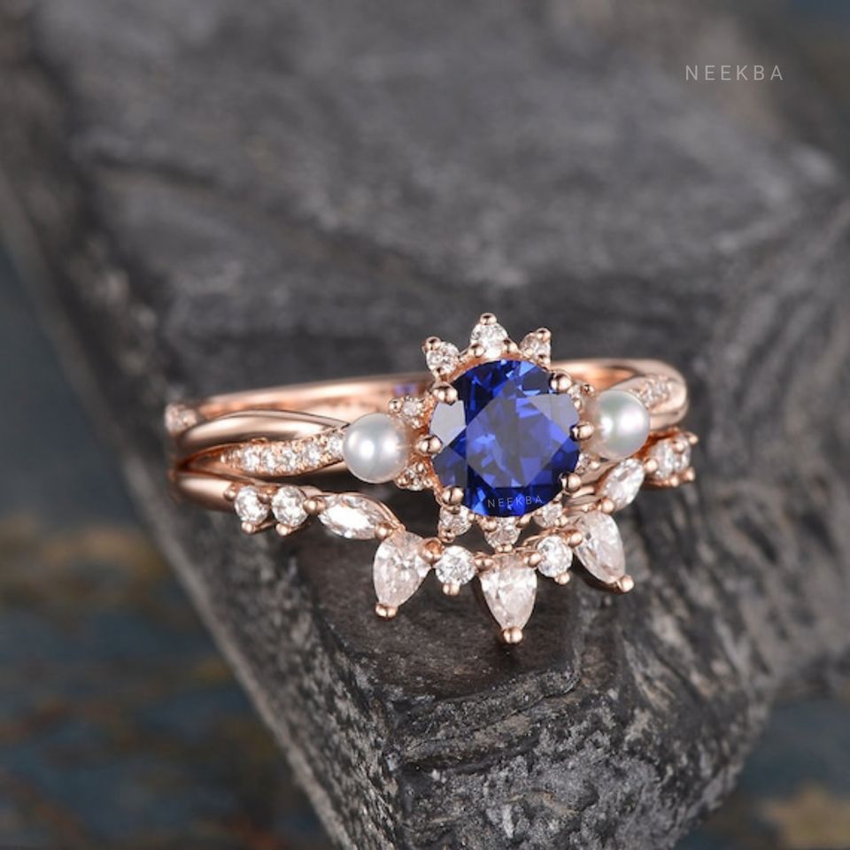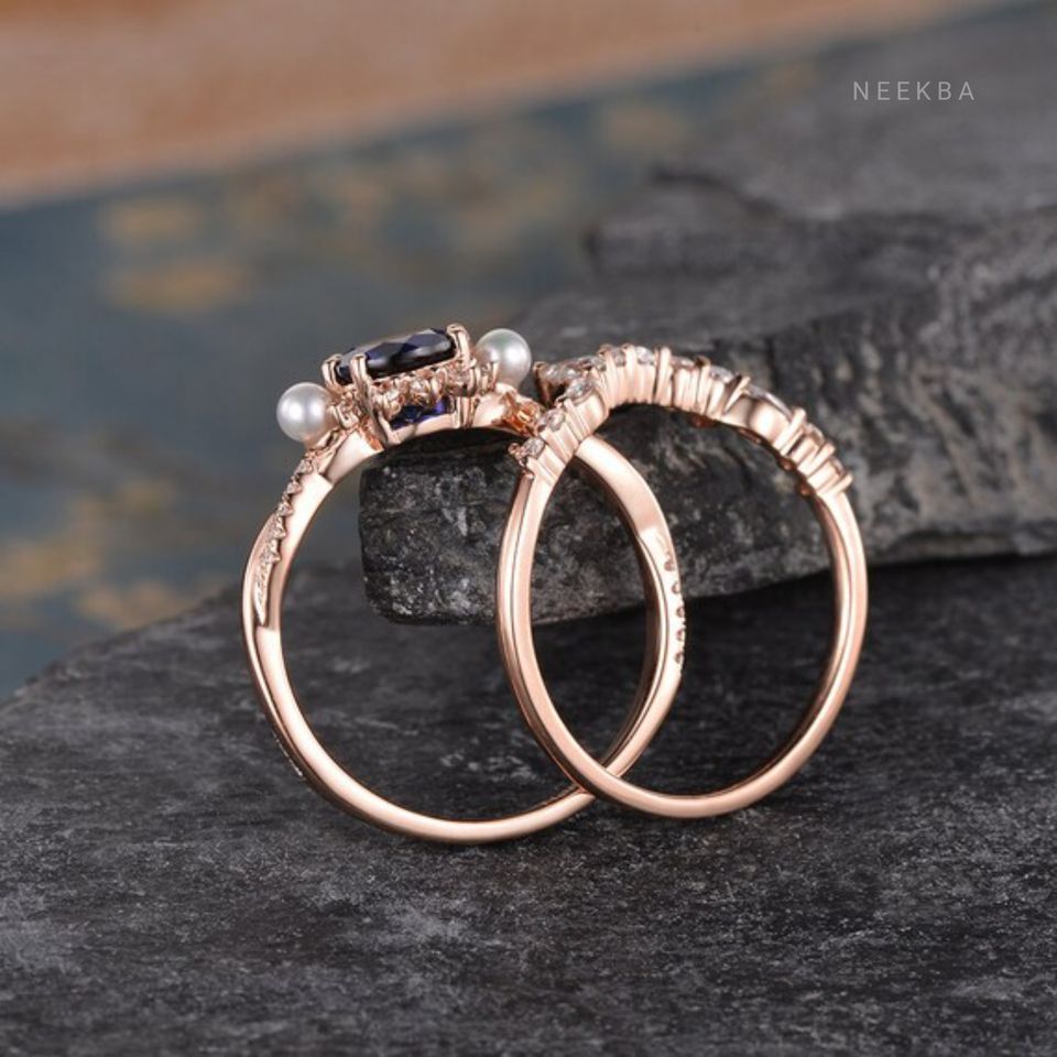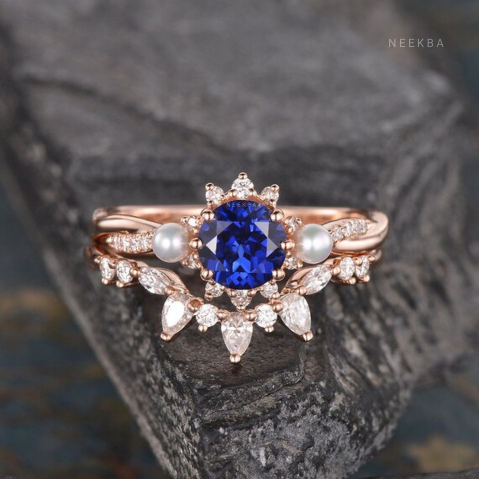 ชุดแหวนแต่งงานไพลินสีน้ำเงินประเภทแหวน