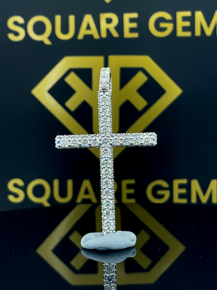 จี้เพชรโมอิสเพชรโมอิสตัดกลมสีเงิน925จี้เครื่องรางกางเขนศักดิ์สิทธิ์ของขวัญวันเกิดสำหรับเธอผ่านการทดสอบเพชร