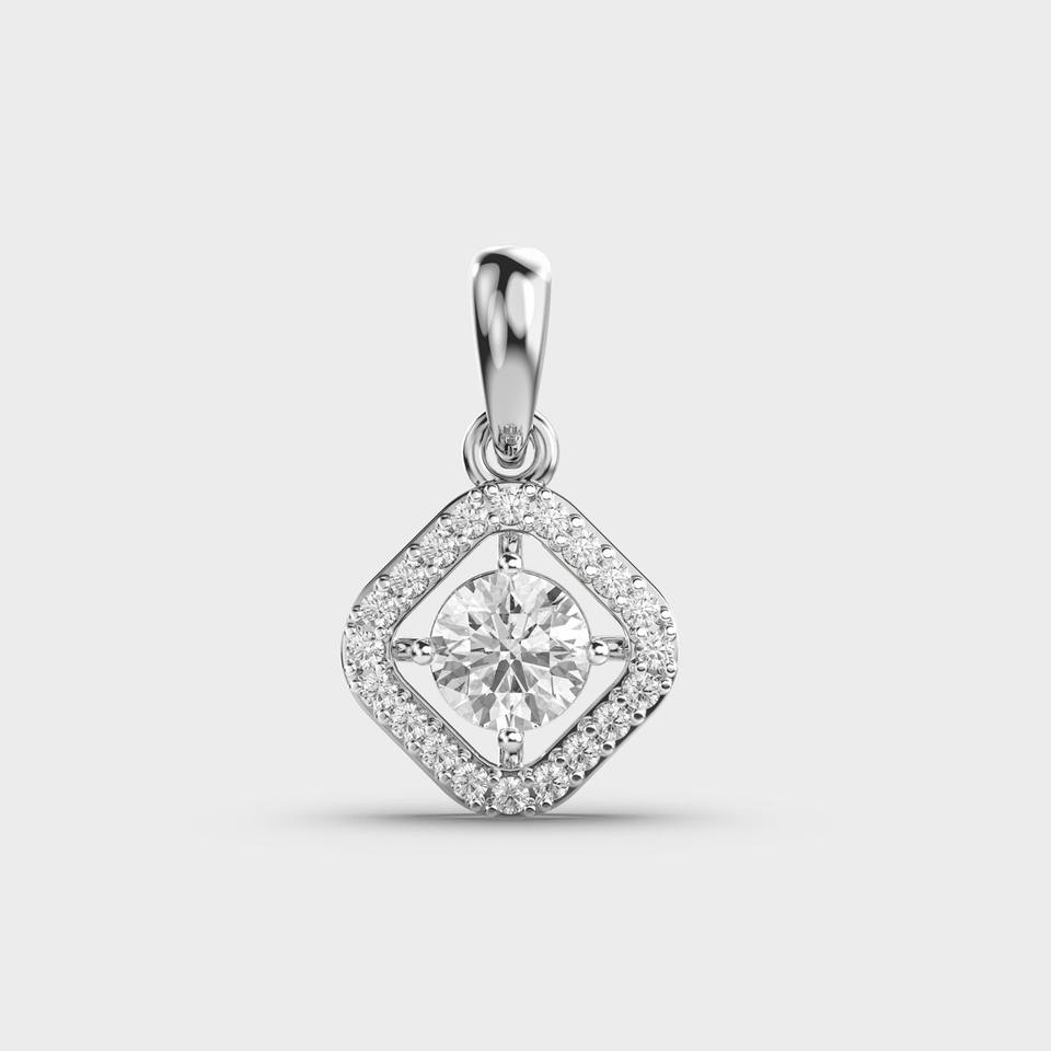 จี้เพชรทรงกลมแบบ Halo ทรงสี่เหลี่ยม ผลิตในห้องปฏิบัติการ ตัวเรือนทอง 14K สีเหลือง/ขาว/โรสโกลด์ ชุบโรเดียม เครื่องประดับผู้หญิงสุดหรู