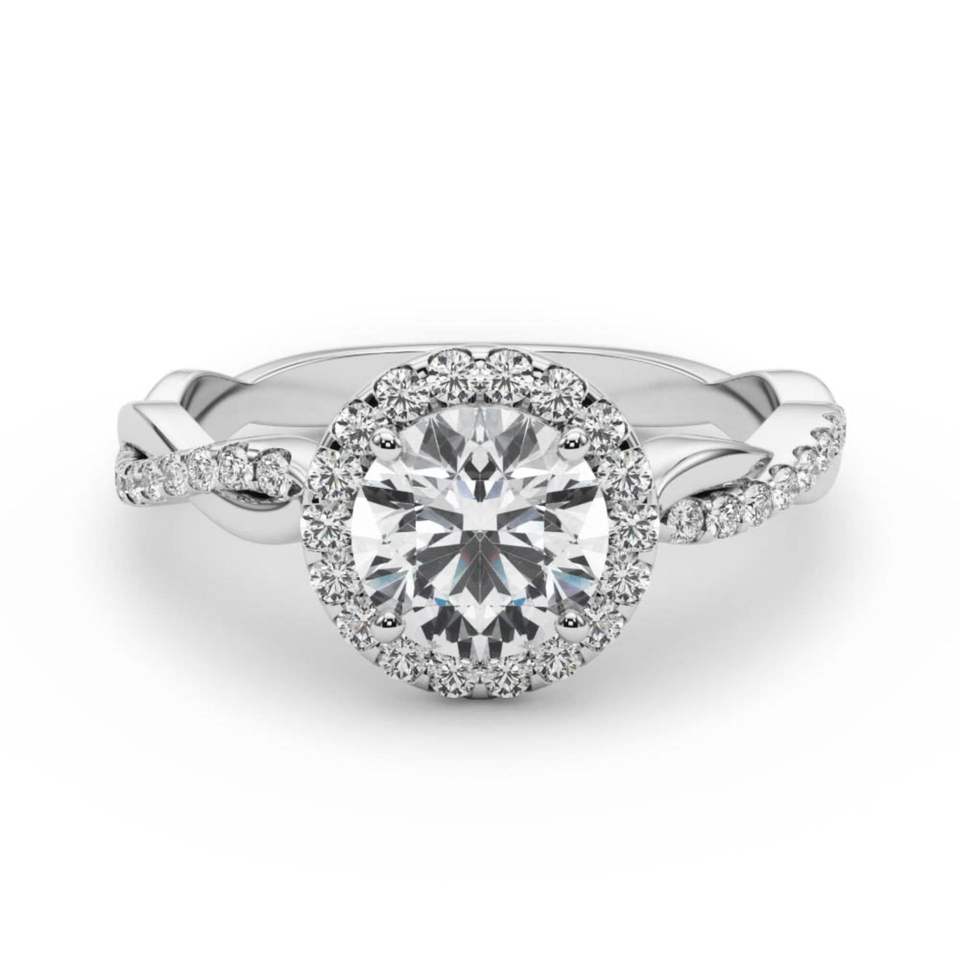 Round Cut Diamond Halo With Twisted Style Engagement Ring For Women/Her