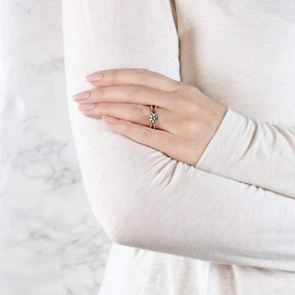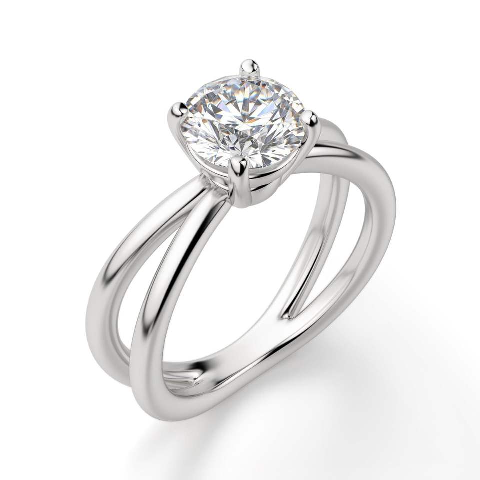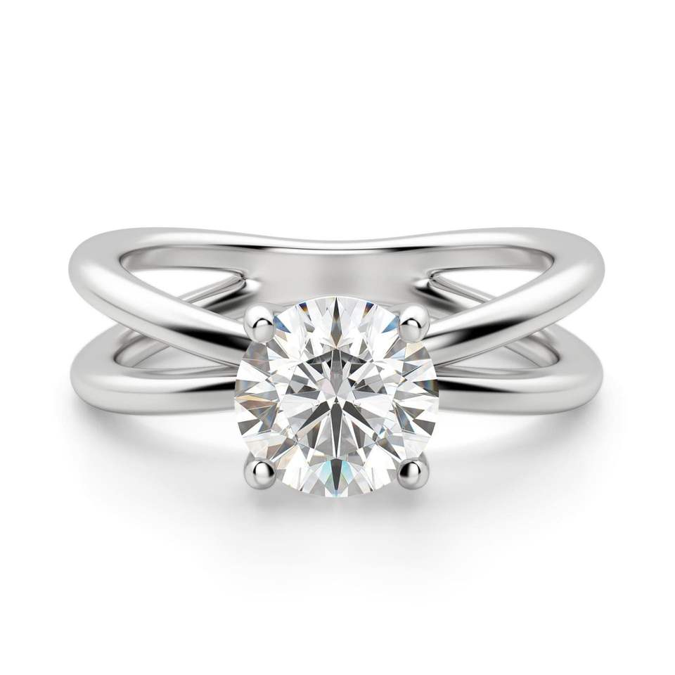 แหวนครบรอบผู้หญิงก้านแยกเพชรตัดทรงกลมสำหรับผู้หญิง