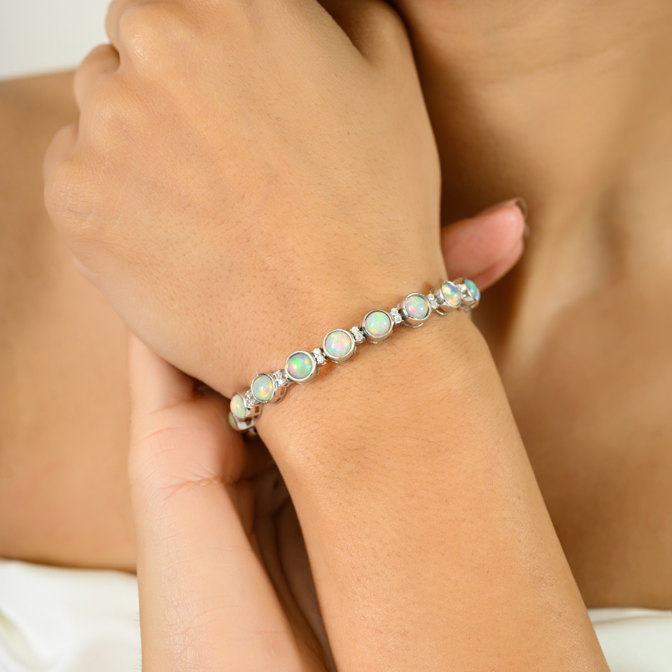 สร้อยข้อมือโอปอลแท้สไตล์เอธิโอเปียนตัดกลมสำหรับผู้หญิงสีเงิน925ทึบผู้ขายที่ดีที่สุดสำหรับของขวัญงานปาร์ตี้ขายส่งสินค้าจำนวนมาก