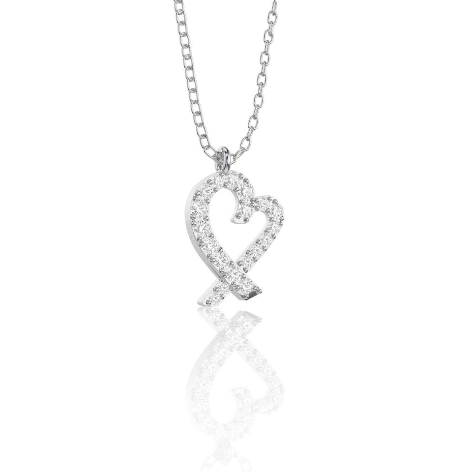 จี้รูปหัวใจแฟนซีทรงกลมประดับมอยส์ซาไนต์สีเงินน่ารักสำหรับผู้หญิง