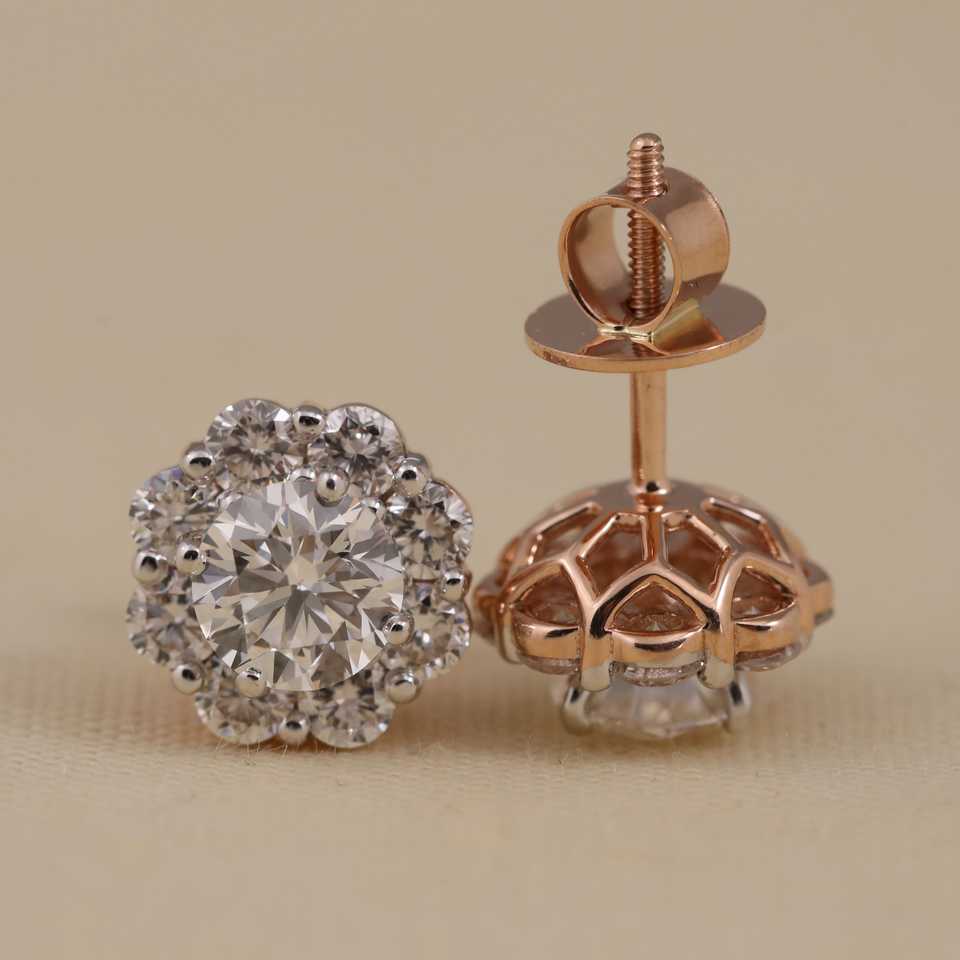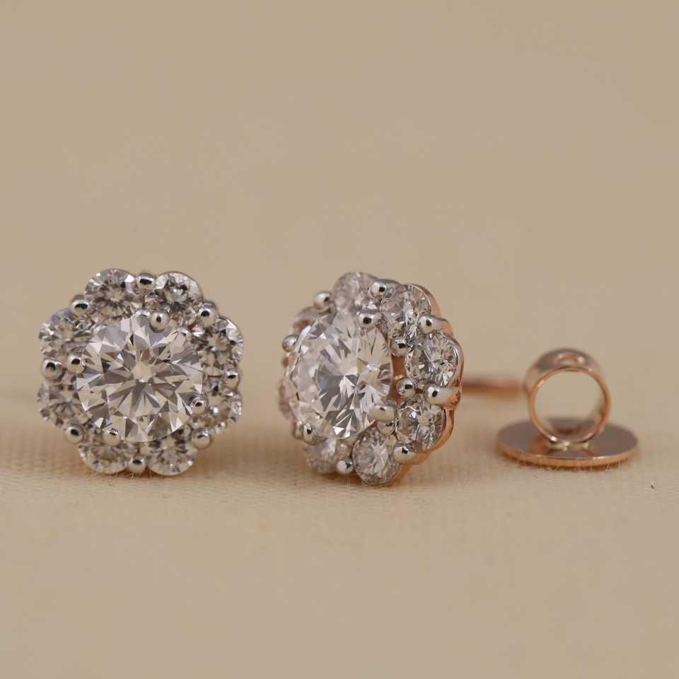 ต่างหูเพชรทรงกลมแบบวงแหวน ประดับเพชรเลี้ยงในห้องปฏิบัติการ เงินสเตอร์ลิง ความใส VS1 เครื่องประดับเพชรสุดหรู