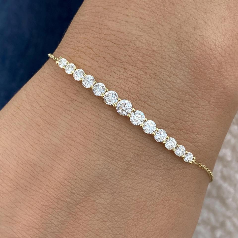 Round Cut Lab Created Diamond Chain Bracelet 14K Yellow Gold 2.5CT E VVS2 Dainty Diamond Jewelry Birthday Gift Idea for Her