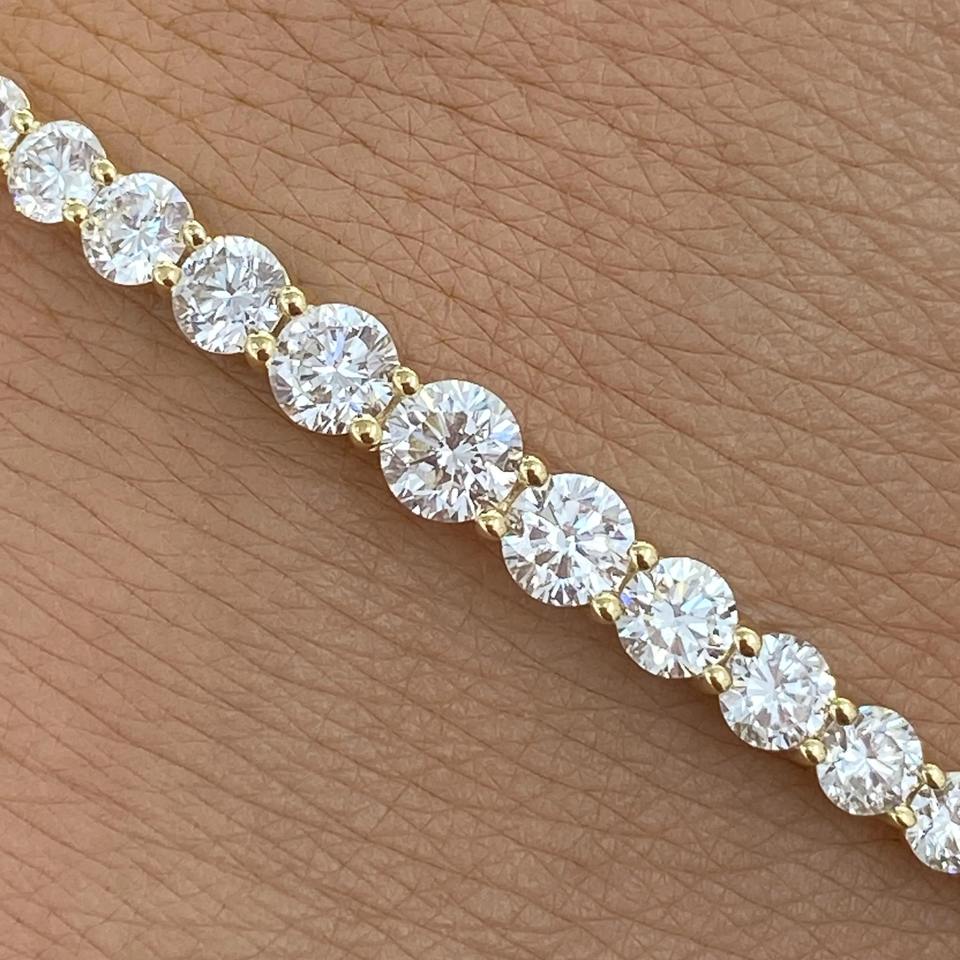 สร้อยข้อมือเพชรทรงกลมสร้างในห้องปฏิบัติการ ทองคำ 14K สีเหลือง 2.5 กะรัต E VVS2 เครื่องประดับเพชรสวยงาม ไอเดียของขวัญวันเกิดสำหรับเธอ