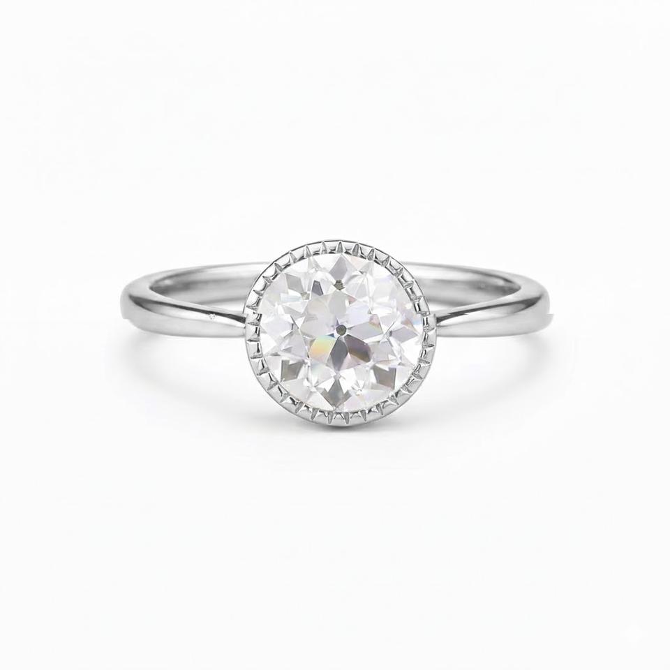 14K Gold Round Cut Diamond Milgrain Bezel Solitaire Ring