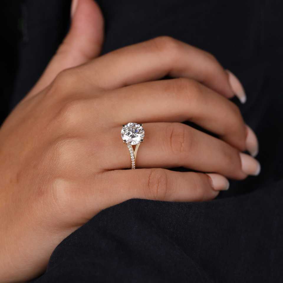 แหวนหมั้นเพชรทรงกลมเพาะเลี้ยงในห้องปฏิบัติการ พร้อมวงแหวนแบบแยกส่วน ตัวเลือกเงินสเตอร์ลิง/ทอง/แพลตตินัม ความใสระดับ VS1/VS