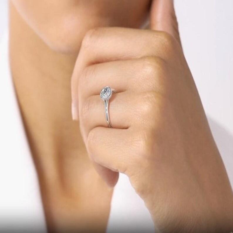 แหวนเพชรหัวกลมสำหรับห้องแล็บที่มีใบรับรอง IGI 6.5มม. แหวนหมั้นแบบโซลิแทร์สำหรับ VS1ความชัดเจน