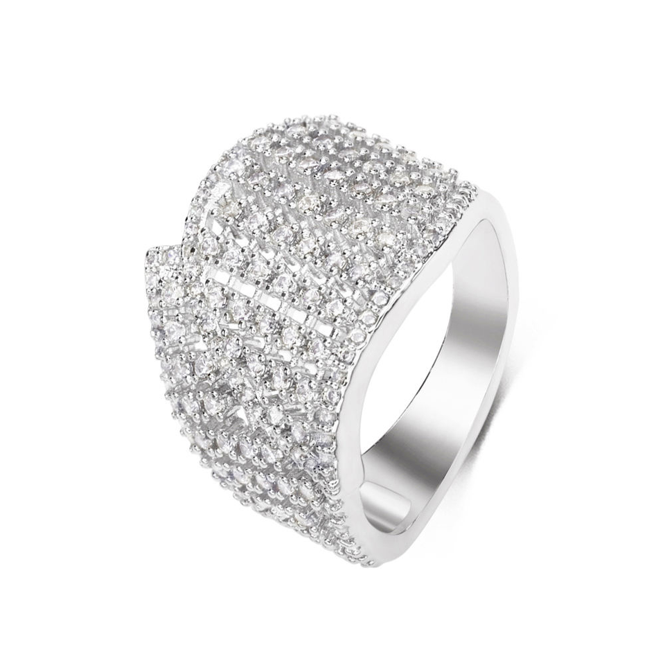 แหวนเพชรโมอิสซาไนต์ทรงกลมแบบวงกว้าง เงินแท้ 925 ประดับเพชรเต็มวง แหวนแบบเปิด ดีไซน์หรูหรา ของขวัญเครื่องประดับสำหรับผู้หญิง