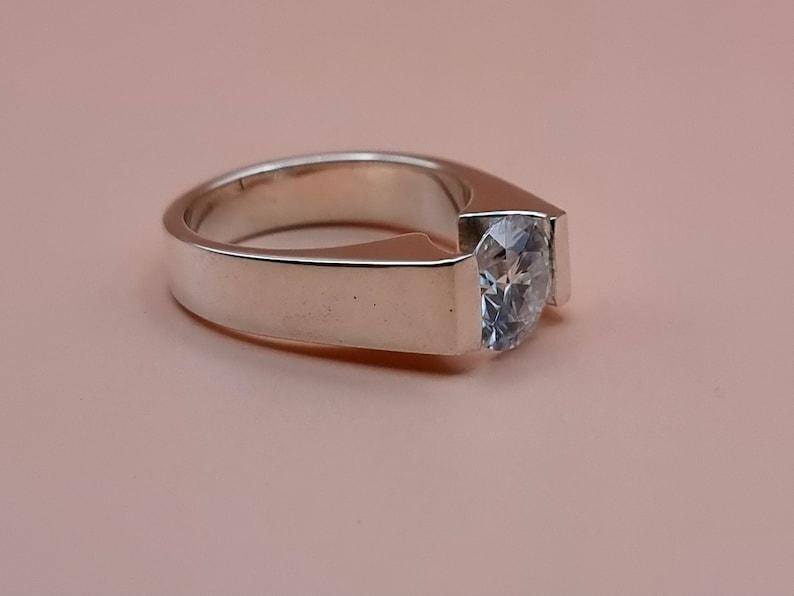 แหวนหมั้นเพชรมอยส์ซอไนต์กลมตัด925เงินสเตอร์ลิงแบนแหวนโซลิแทร์แฮนด์เมดสำหรับผู้หญิง