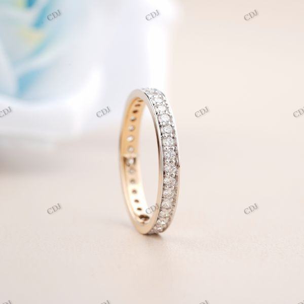 แหวนเพชรโมอิสทรงกลมแบบวางซ้อนกันได้สำหรับผู้หญิงเครื่องประดับที่ผ่านการรับรองการออกแบบวงแต่งงานล่าสุดสำหรับเธอ