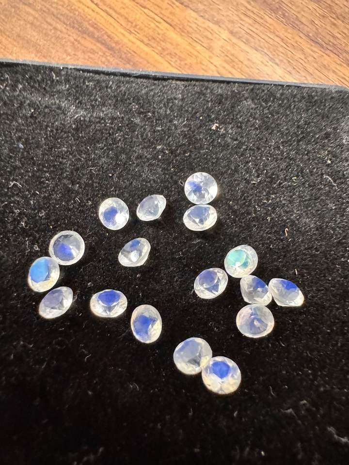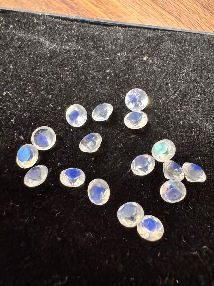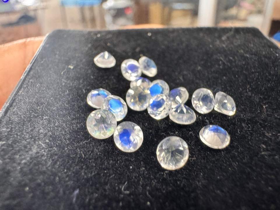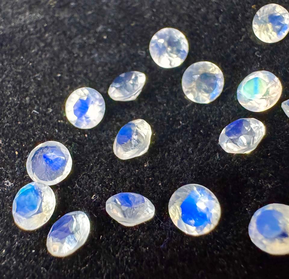 พลอยมูนสโตนสีรุ้งสีขาวไฟสีธรรมชาติทรงกลมตัดสำหรับทำเครื่องประดับขนาด4มม. ทำด้วยมือพร้อมเล่นสี