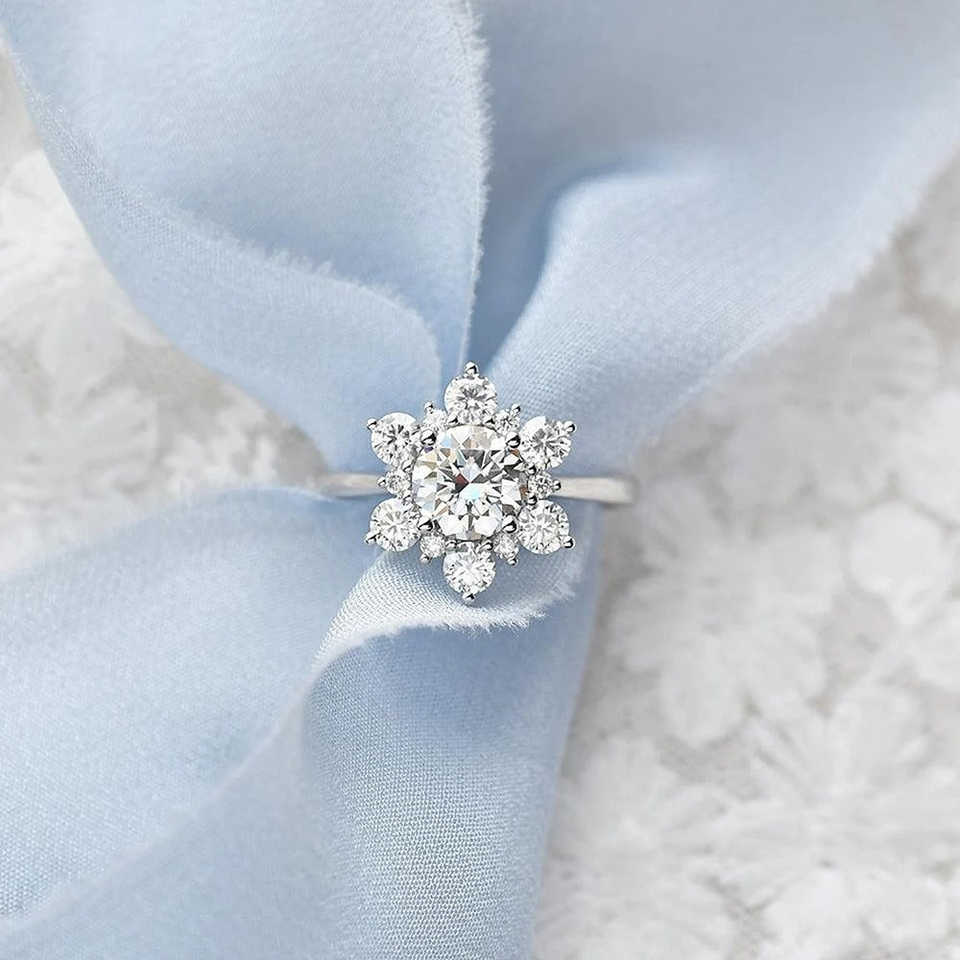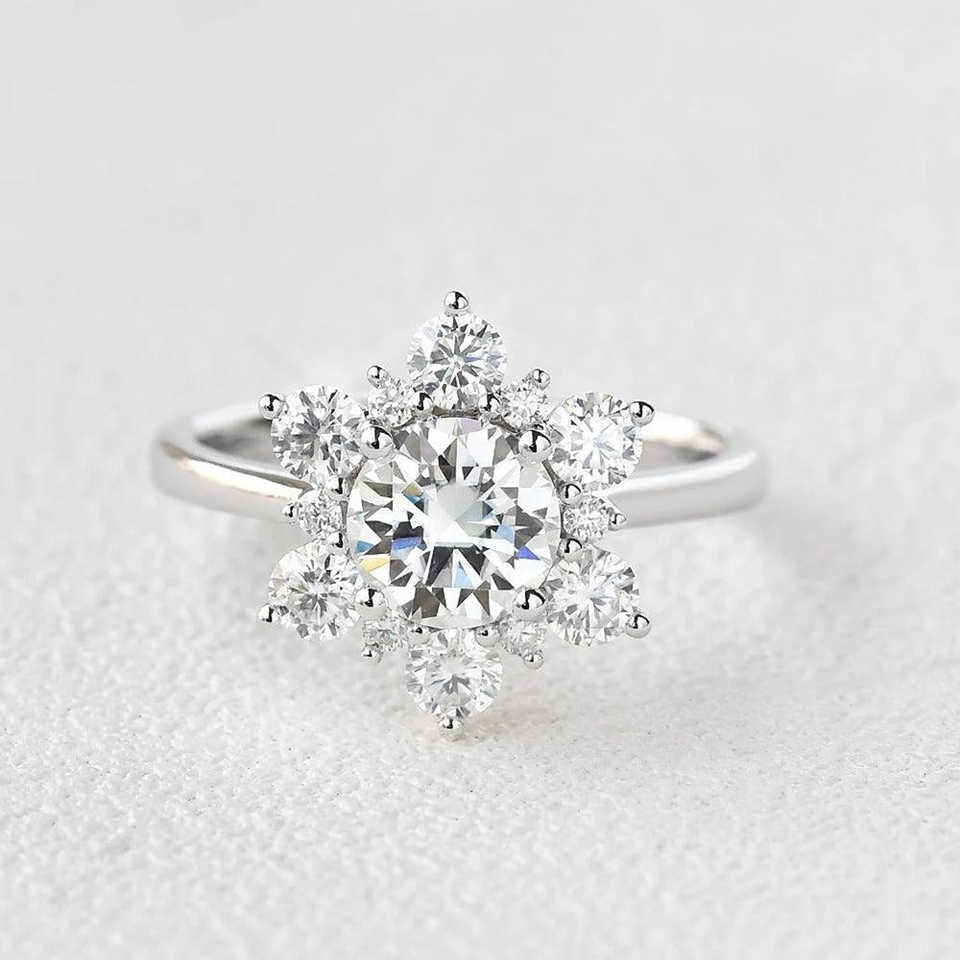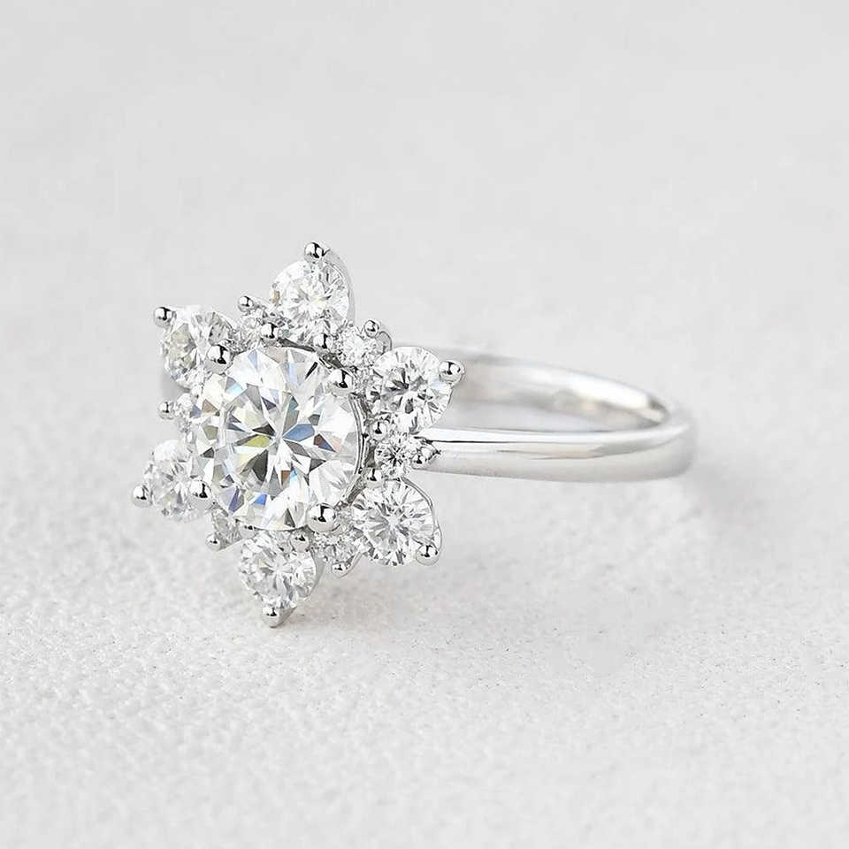 แหวนหมั้นเพชรโมอิสซาไนต์ทรงกลมแบบวินเทจ ประดับด้วยเงินแท้ 925 ดีไซน์หรูหราสไตล์วินเทจสำหรับงานแต่งงาน