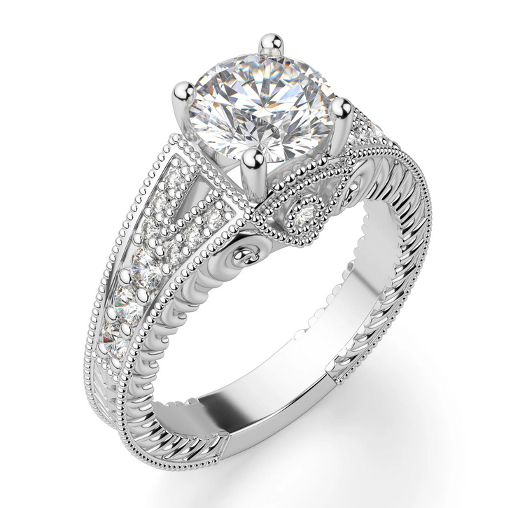 แหวนเพชรมอยส์ซอไนต์สไตล์วินเทจตัดเป็นชิ้นๆมีก้านแยกสีเงินสเตอร์ลิงสำหรับงานแต่งงานหรืองานปาร์ตี้ส่งตรงจากอินเดีย