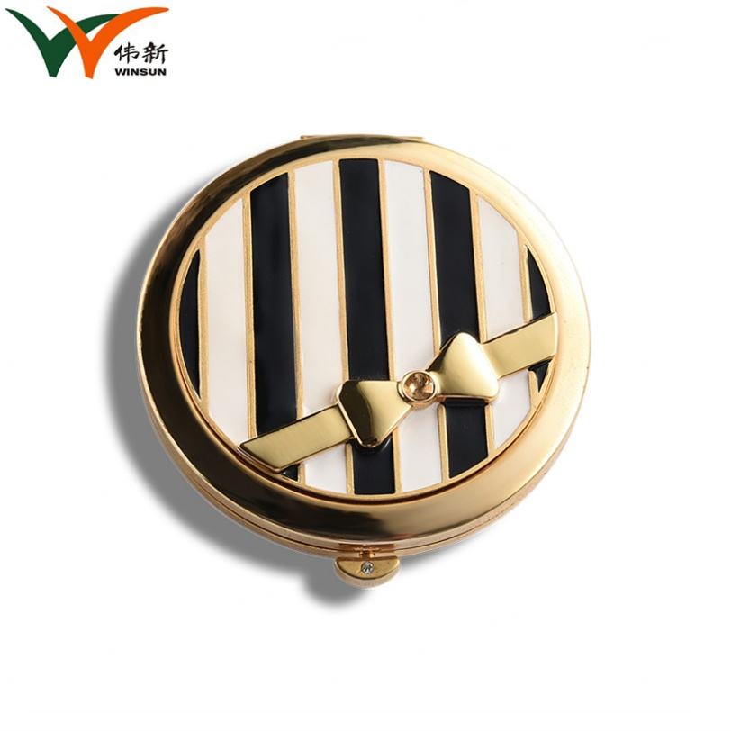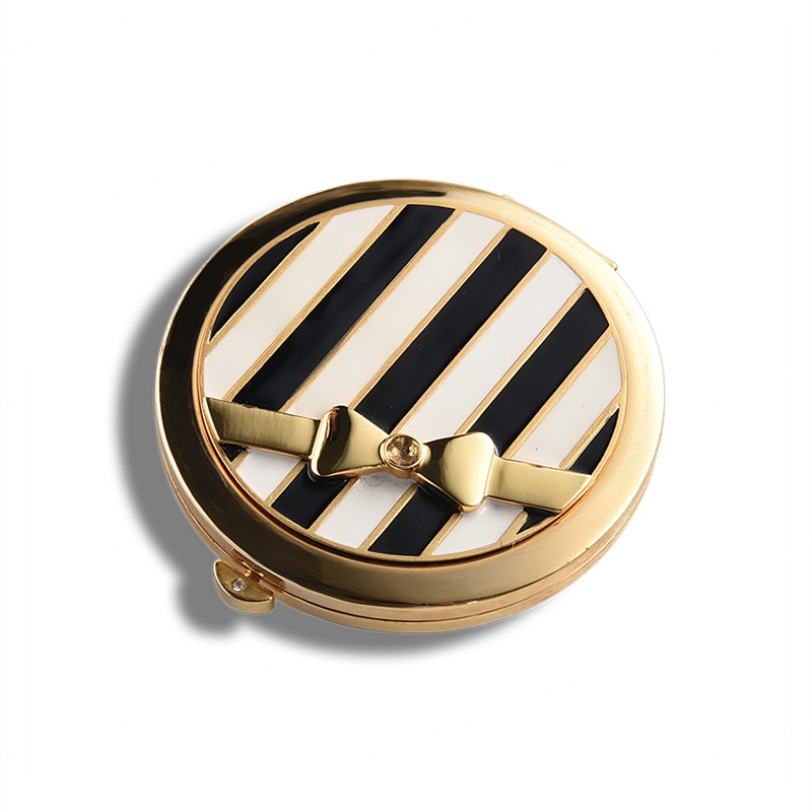กระจกแต่งหน้าขนาดพกพา โลหะสีทอง ลายโบว์ ทำจากอีนาเมลนิ่ม
