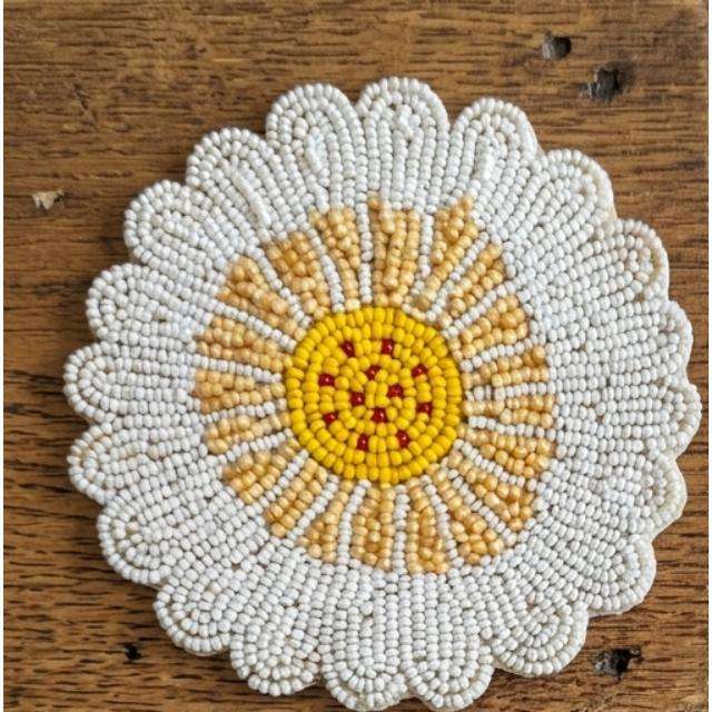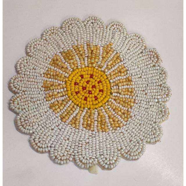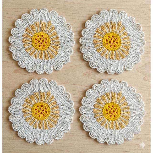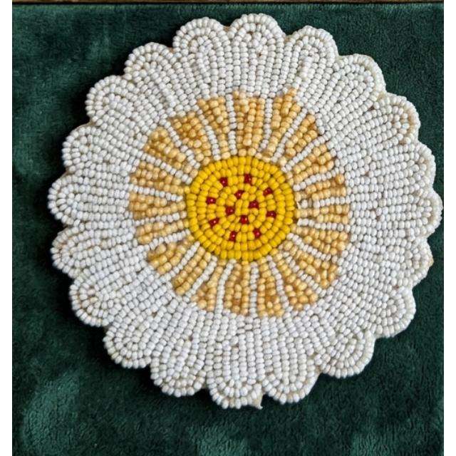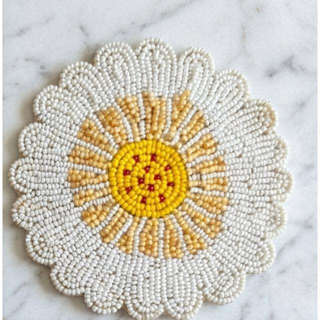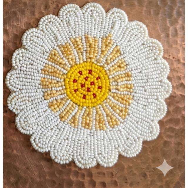 แผ่นรองแก้วลายดอกเดซี่ทรงกลมประดับลูกปัด งานแฮนด์เมด ตกแต่งโต๊ะอาหาร แผ่นรองแก้วกาแฟ อุปกรณ์ตกแต่งโต๊ะอาหารสุดหรู ของตกแต่งบ้านมีสไตล์