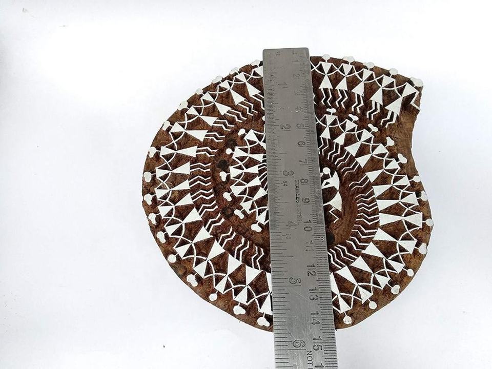 ตราประทับการพิมพ์ผ้าสิ่งทอแกะสลักด้วยมือดีไซน์ทรงกลมชื่อผลิตภัณฑ์