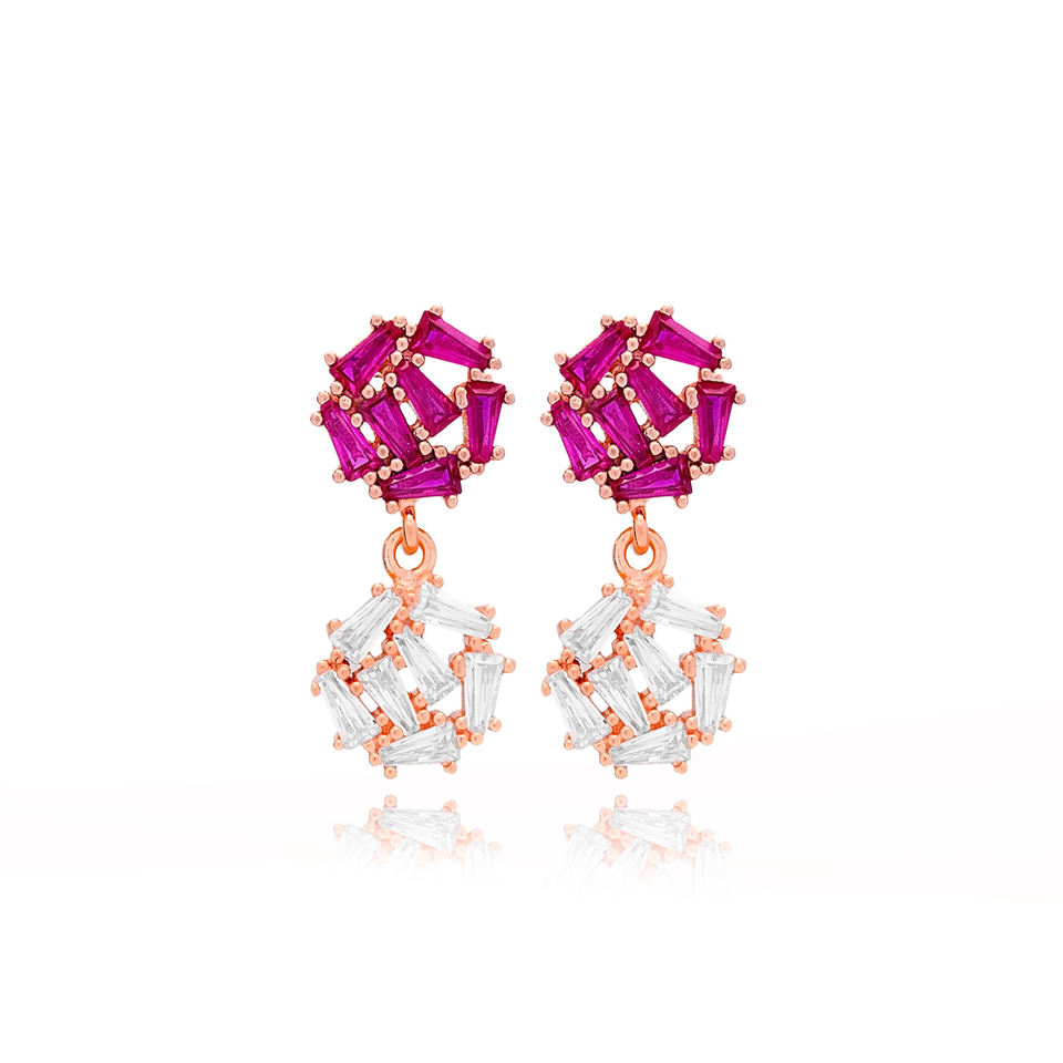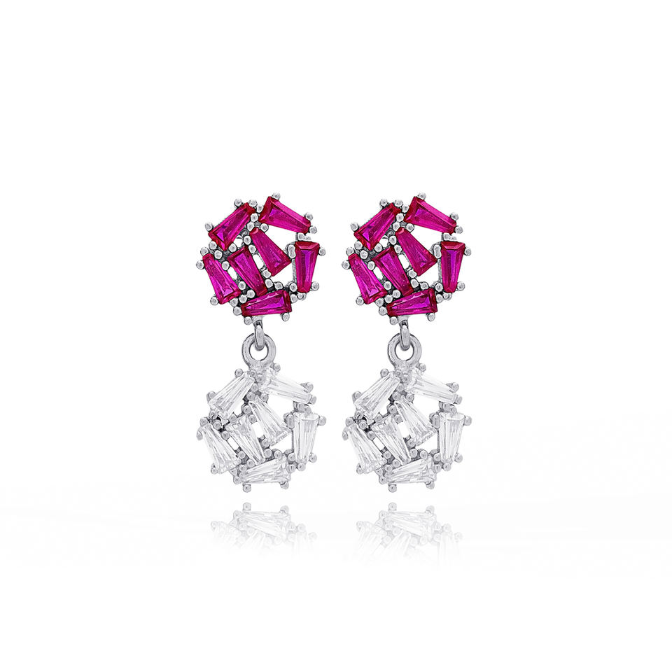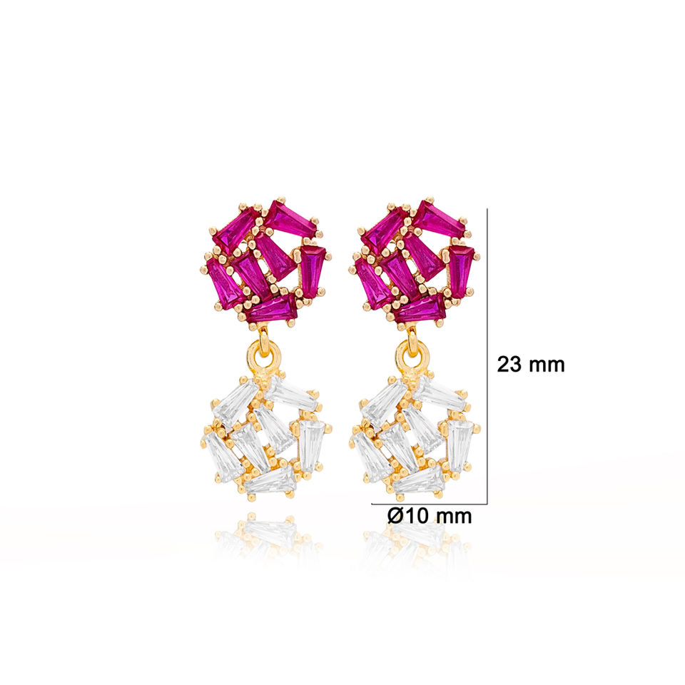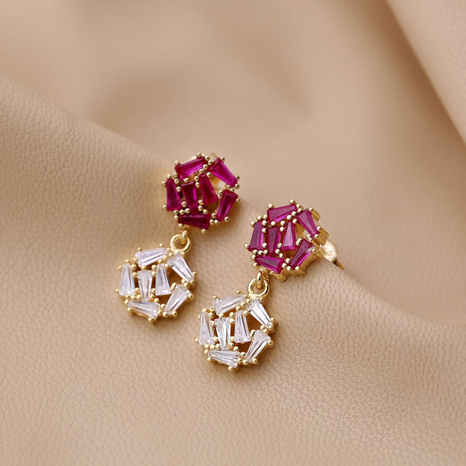 รอบการออกแบบทับทิมกับเพทายเหลี่ยมหินผู้หญิงอินเทรนด์ต่างหูน่ารัก925เครื่องประดับเงินสเตอร์ลิง