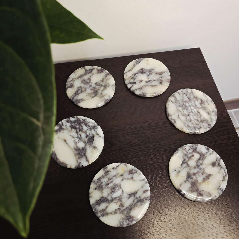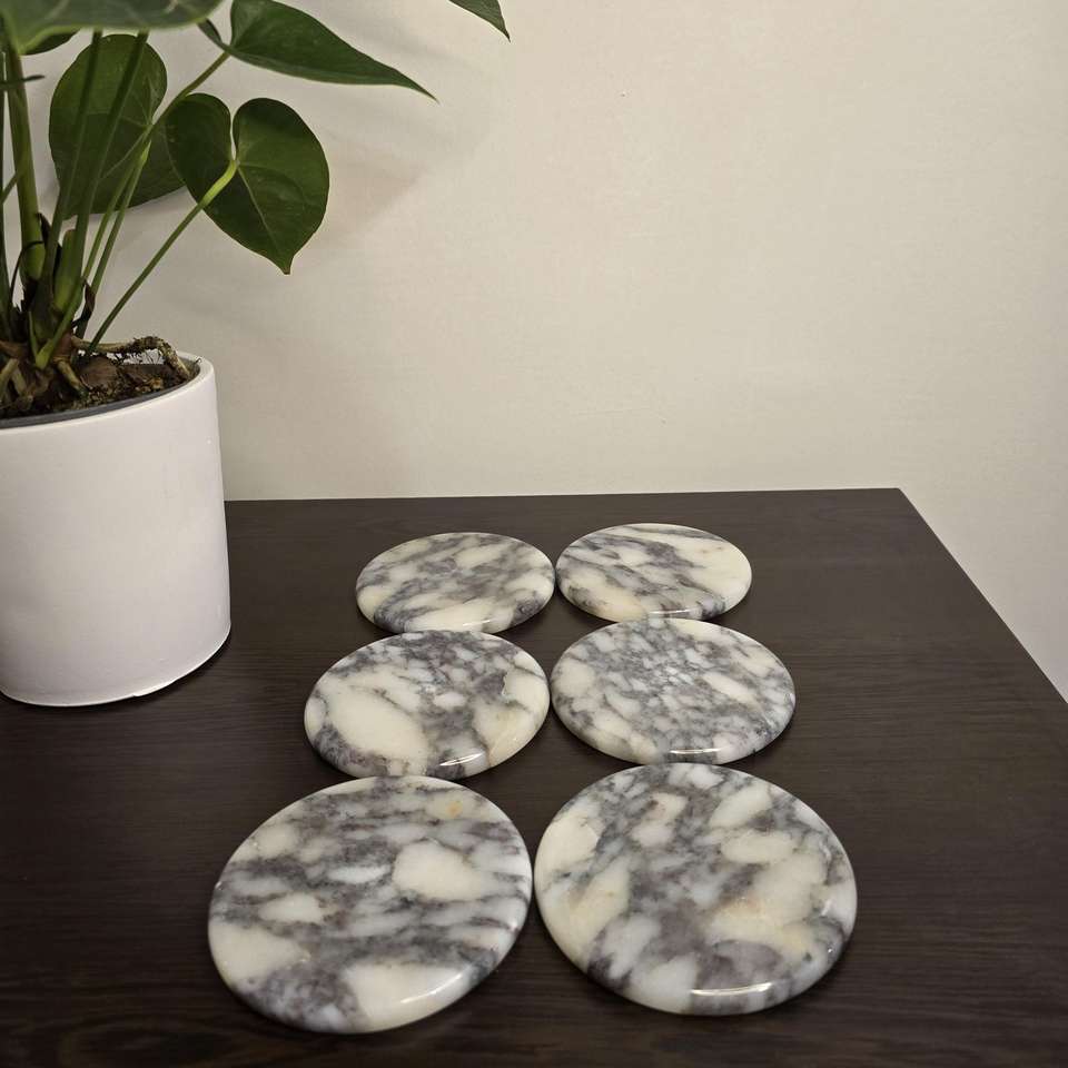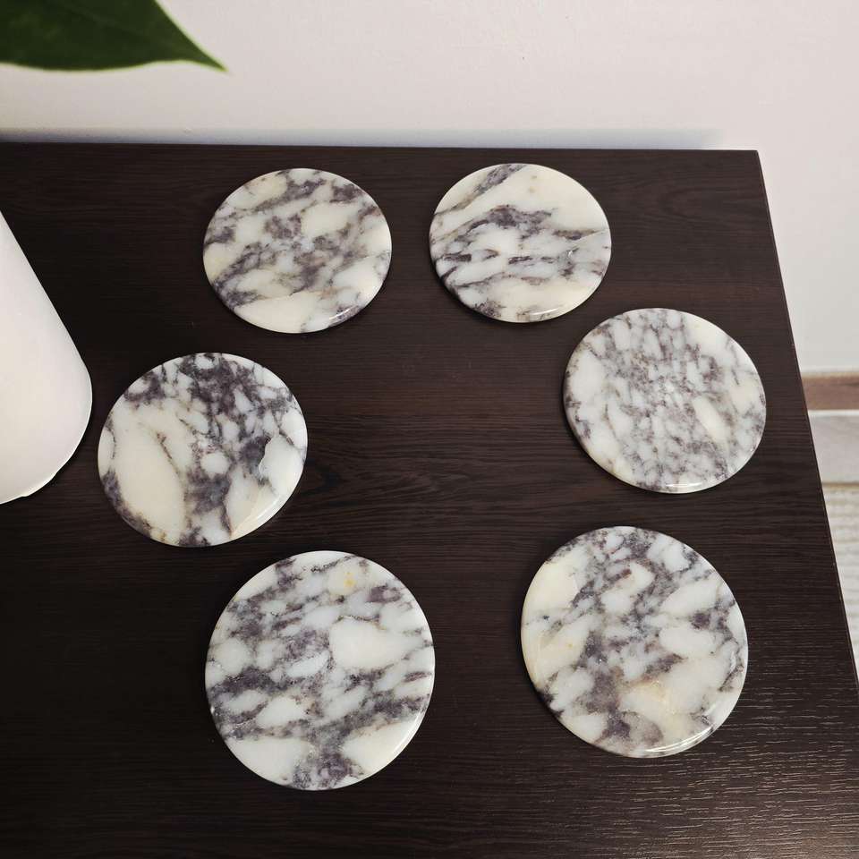แผ่นรองแก้วหินอ่อนทรงกลม ดีไซน์สวยงาม เหมาะสำหรับป้องกันรอยความร้อนและความชื้น ขายส่งจากอินเดีย